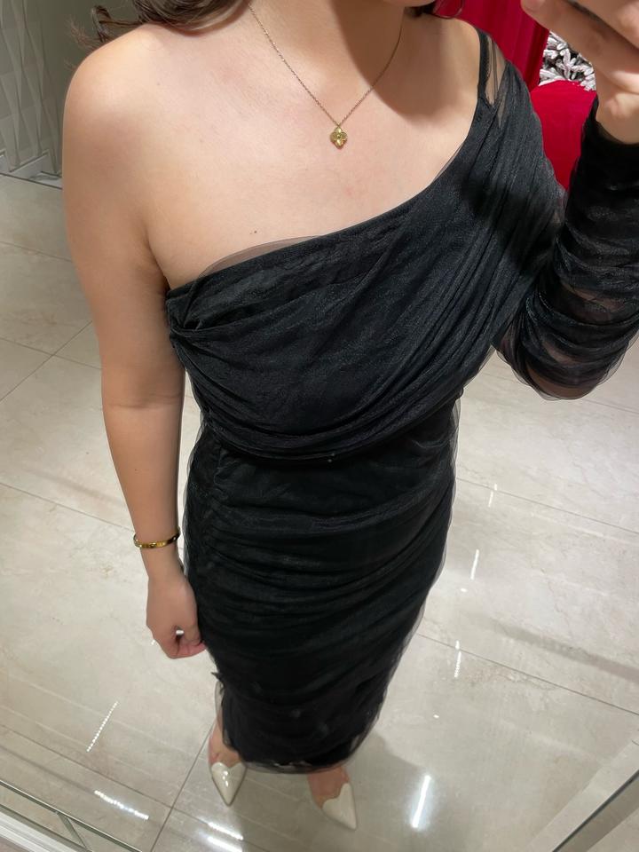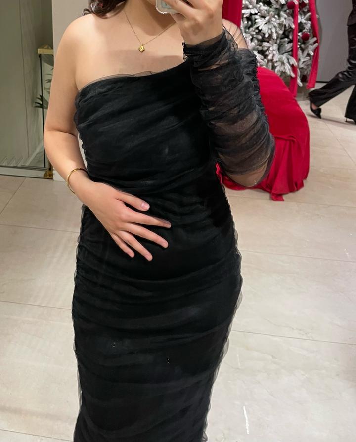 Чёрное платье, надето всего 1 раз, размер оказался немного большим. Артикул: 529394