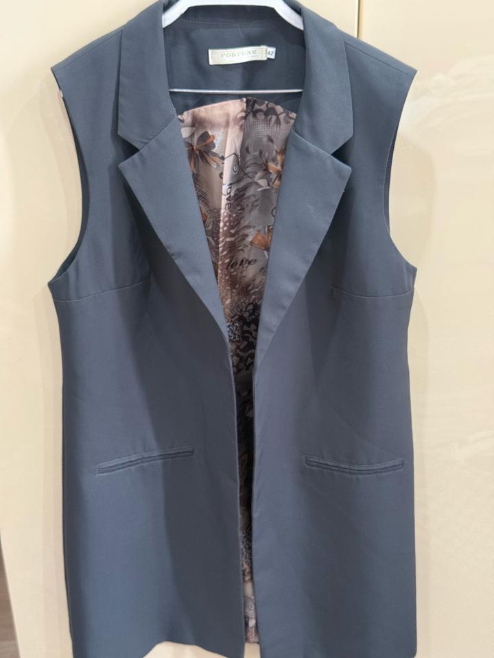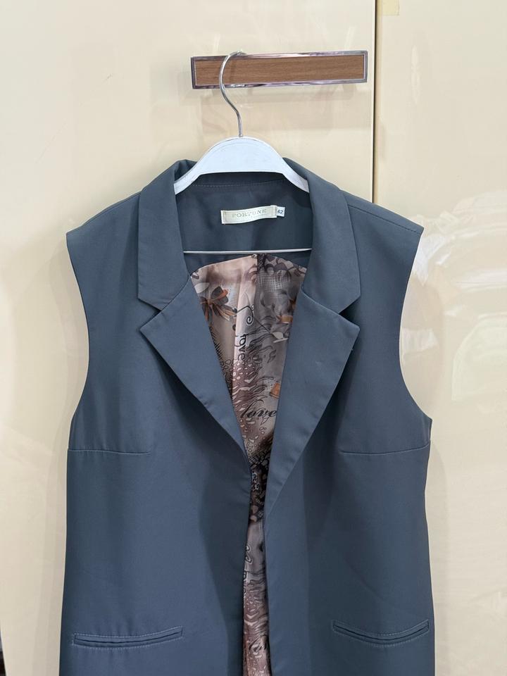 Жакет удлиненный серый, офисного стиля, отличного качества, размер 42 Артикул: 529422