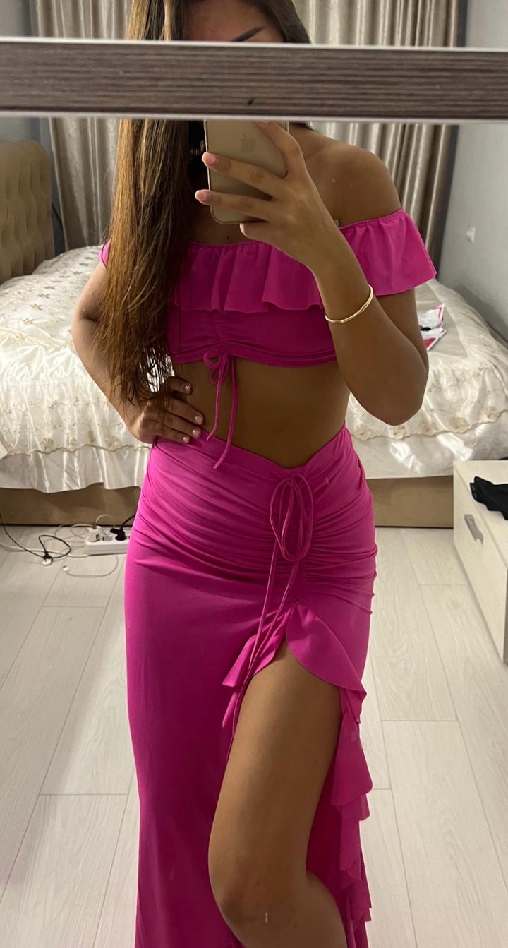 Продам летнюю двойку размера S. Одевала 1 раз на фотосъемку. Брала в emi boutique. Длина разреза регулируется. Артикул: 529441
