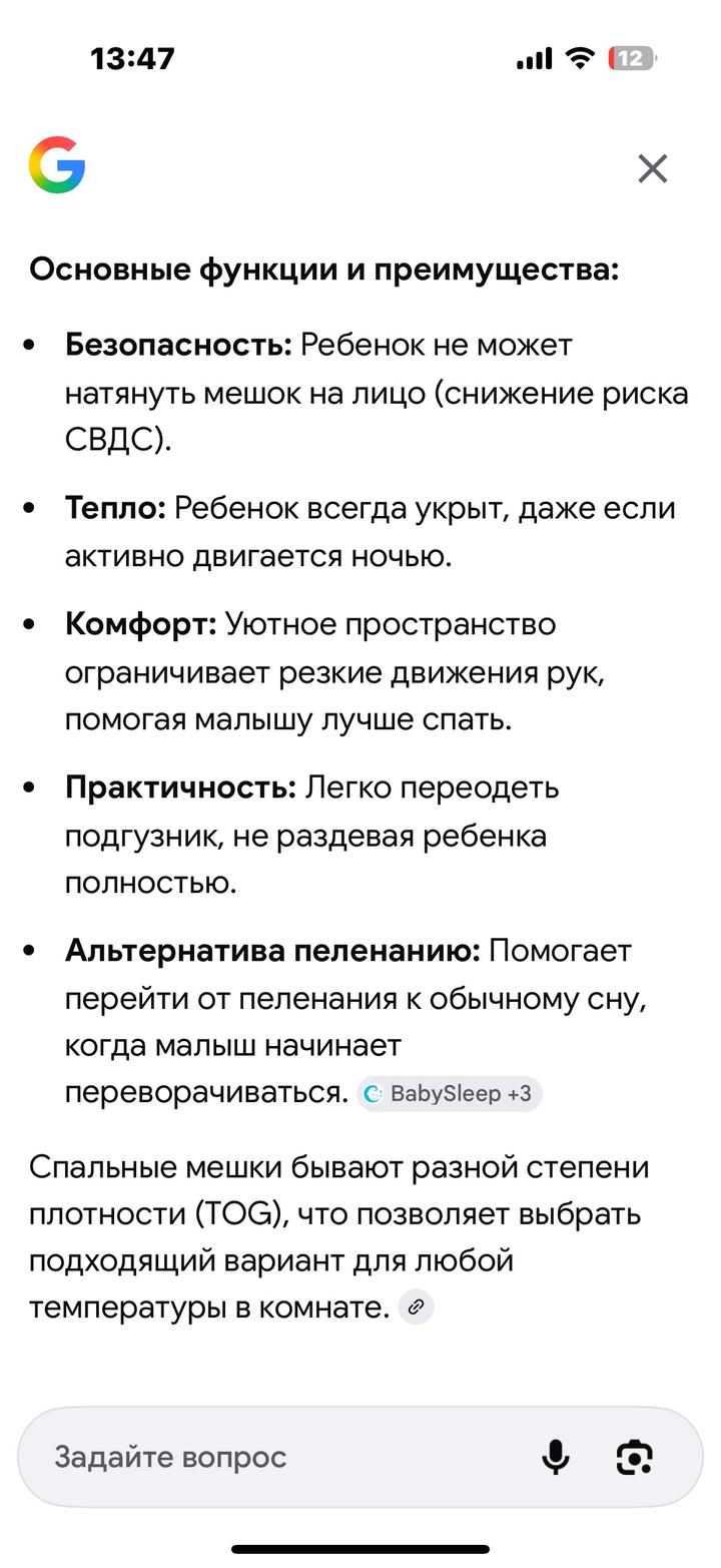 Спальный мешок летний 100% хлопок; Спальный мешок для новорожденных нужен для обеспечения безопасного и комфортного сна, заменяя одеяло, которое может накрывать лицо или сползать. Он сохраняет тепло, не дает малышу раскрыться и замерзнуть, создает уют (как в животе у мамы), предотвращает риск удушья и помогает избежать перегрева. Абсолютно новый, у меня их несколько этим ни разу не пользовались; размер с рождения до 6 мес Есть еще 2 в наличии б/у для самых маленьких 0-3 мес; Артикул: 529514