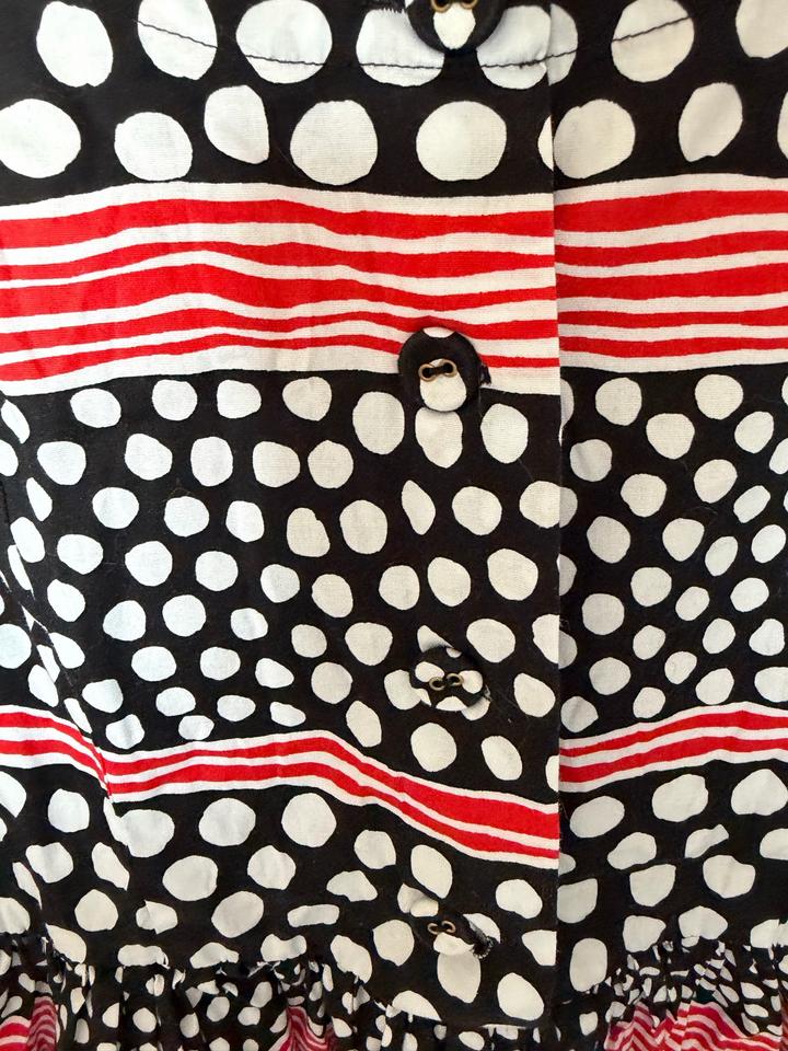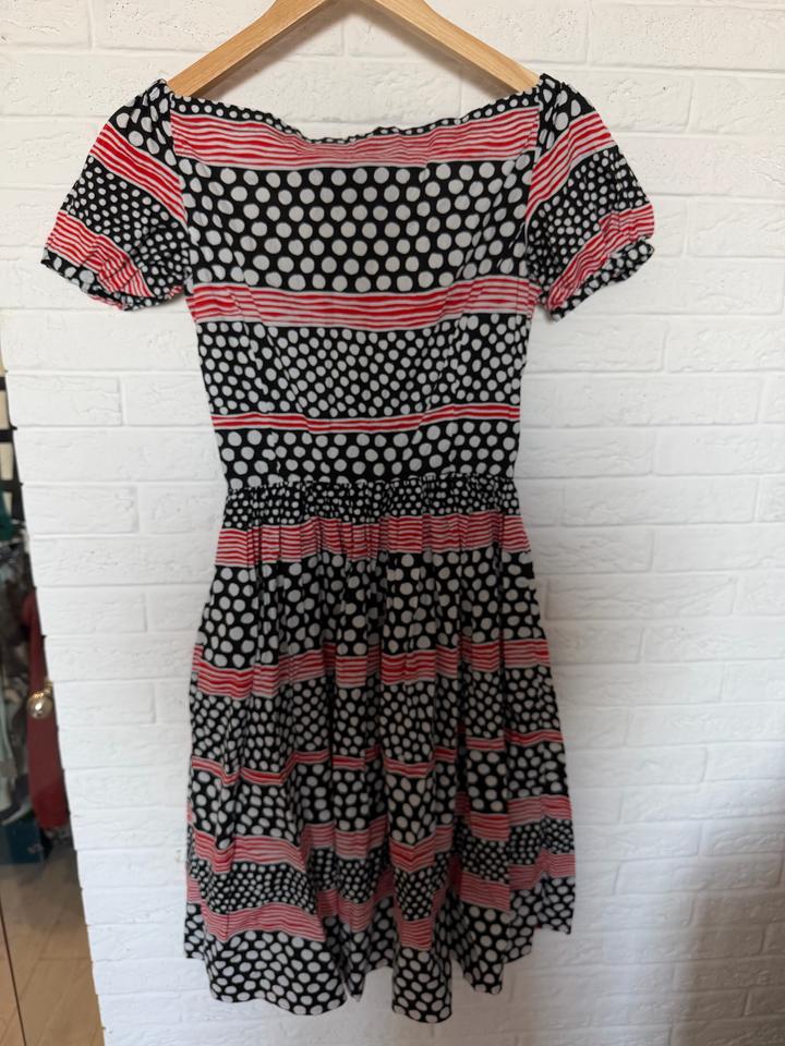 Винтажное хлопковое платье от Prada из коллекции 2012 года, созданной Миуччей Прада. Фасон: Платье длины миди с круглым вырезом, короткими пышными рукавами-фонариками и приталенным силуэтом. Эта модель считается коллекционной вещью. Хлопок Артикул: 529551