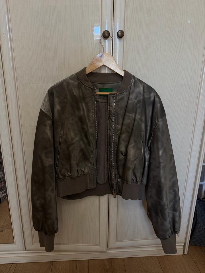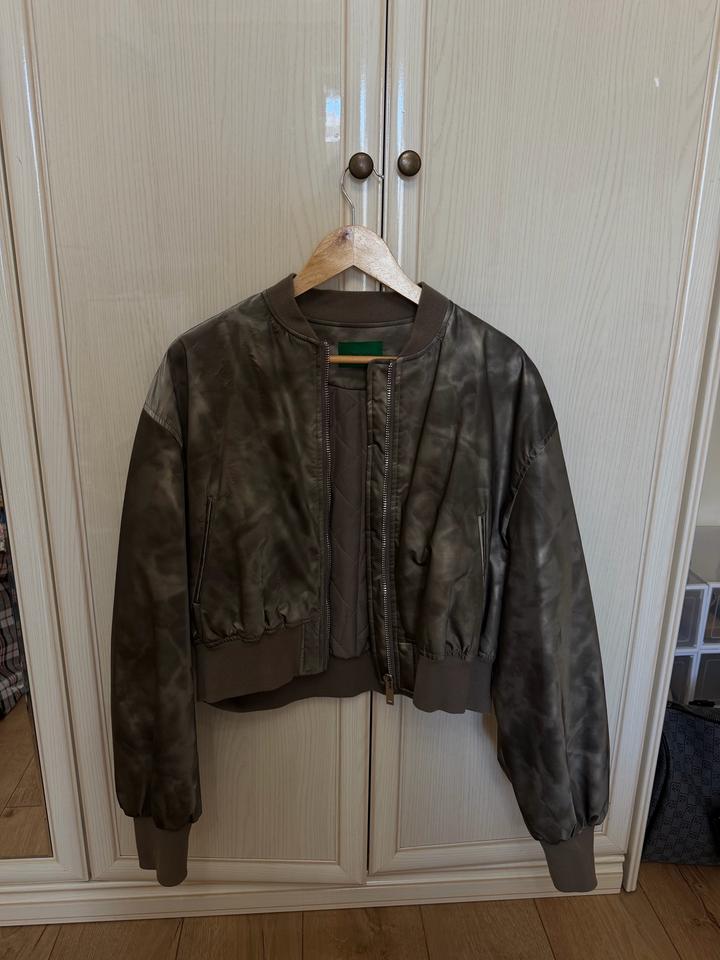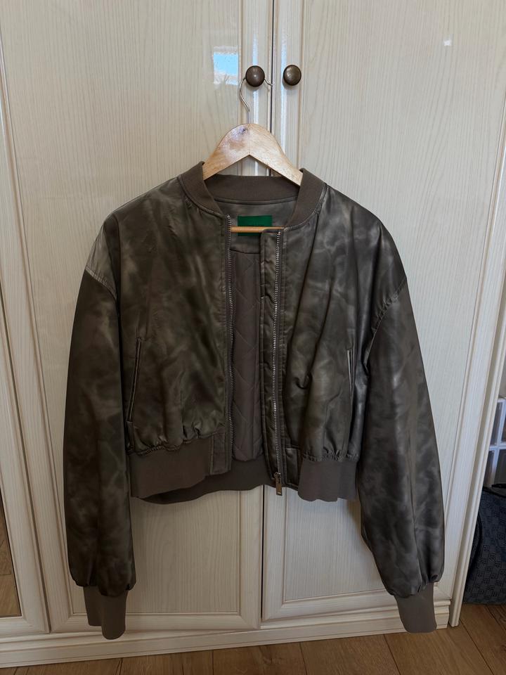 Женский укороченный бомбер Стильный бомбер красивого оттенка хаки/оливковый. Смотрится очень актуально и легко сочетается с джинсами, брюками, юбками и спортивным стилем. Материал приятный, лёгкий, внутри есть подклад. Отличный вариант на весну, осень и прохладные вечера. Состояние: хорошее Фасон: укороченный, свободный Цвет: хаки / оливковый Подойдёт на: S-M Артикул: 529664