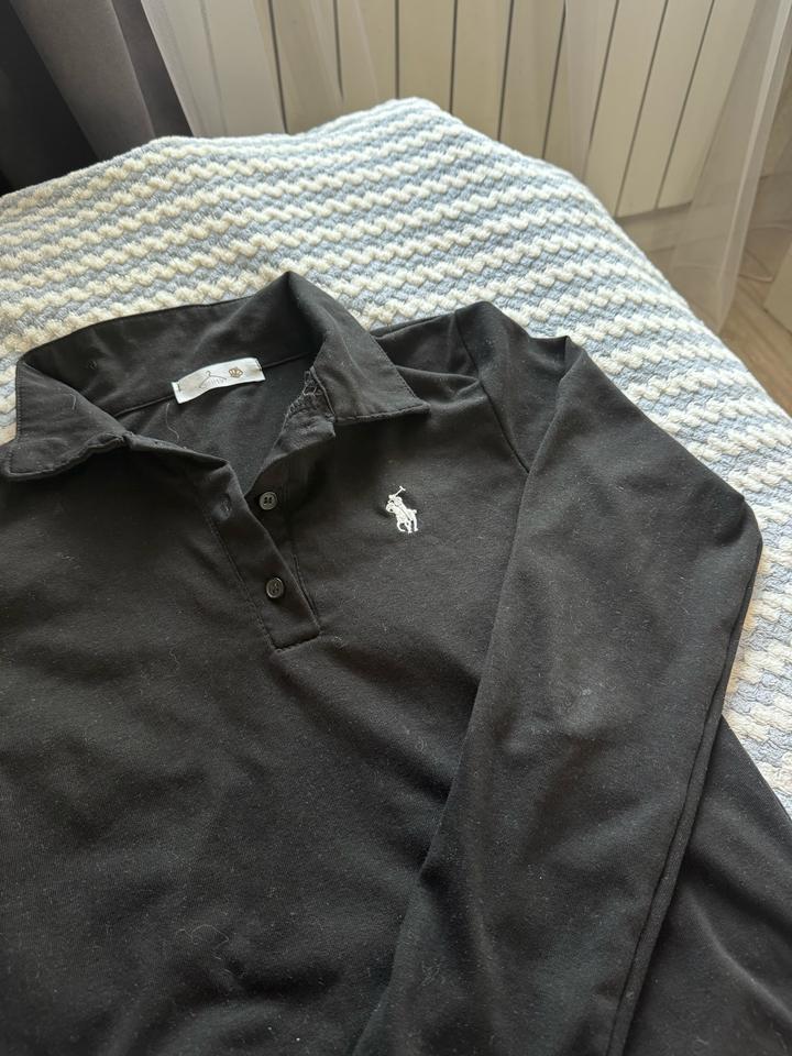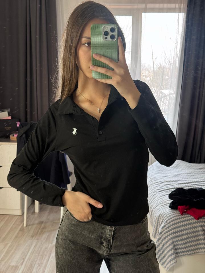 Черный базовый лонгслив с воротником. Размер S/M Артикул: 529761