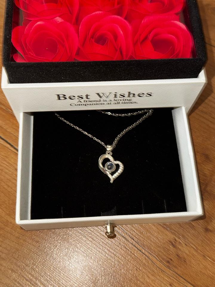 Премиум Цепь серебро (проба 925) Шкатулка + мыльные розы ( легкий аромат выглядят как живые долго сохраняются) Кулон сердце с линзой Внутри кулона спрятана миниатюрная проекция слов “ я люблю тебя ” на 100 языках мира Поднеси кулон ближе к стене или листу бумаги направь на линзу кулона фонарь, лампу или солнечный луч и наблюдай как проявляется проекция со словами любви! Кому подарить: Маме , Сестре, Лучшей подруге , Себе! Артикул: 529769