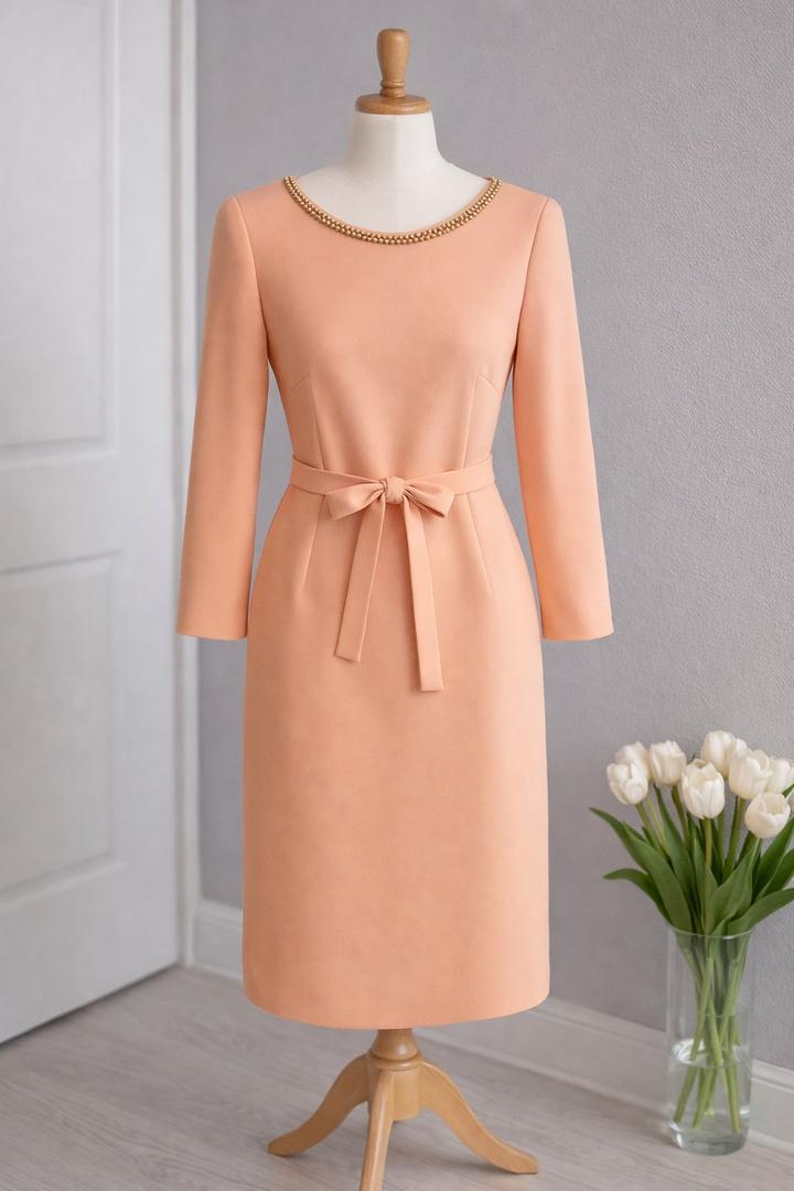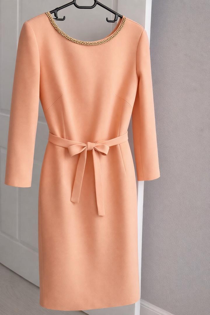 Женственное и стильное платье, которое подчеркнет вашу утонченность и вкус. Идеальный вариант для мероприятий, работы или повседневного образа. ✨ Особенности: • Нежный персиковый цвет • Украшение на вороте (бусины/декор) • Аккуратный пояс подчеркивает талию • Классический крой — отлично сидит по фигуре • Длинный рукав 📏 Подчеркивает фигуру, смотрится аккуратно и дорого 👗 Подходит как для офиса, так и для праздников Артикул: 529833