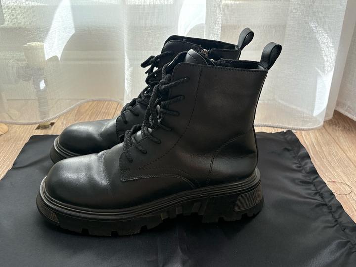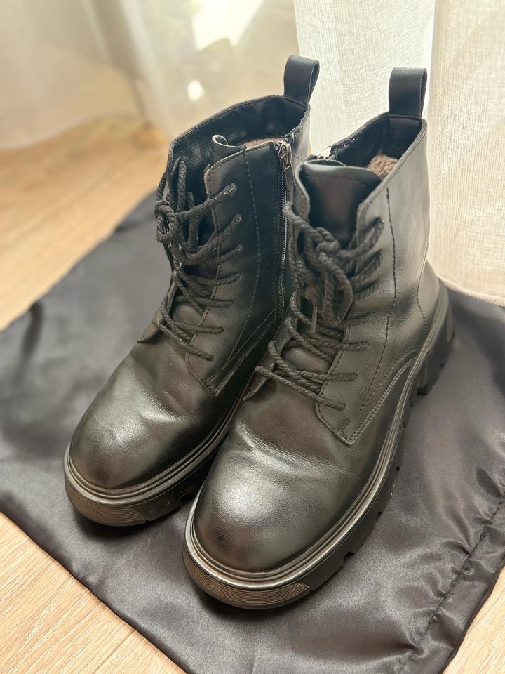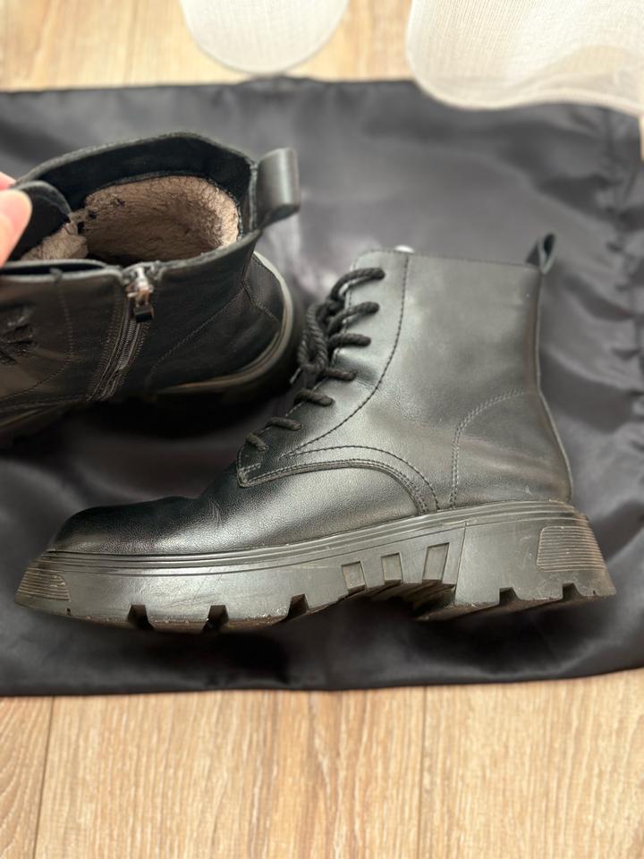 Черные кожаныеботинки (берцы) на шнуровке с грубой подошвой и боковой молнией.39р.Зима Артикул: 529848