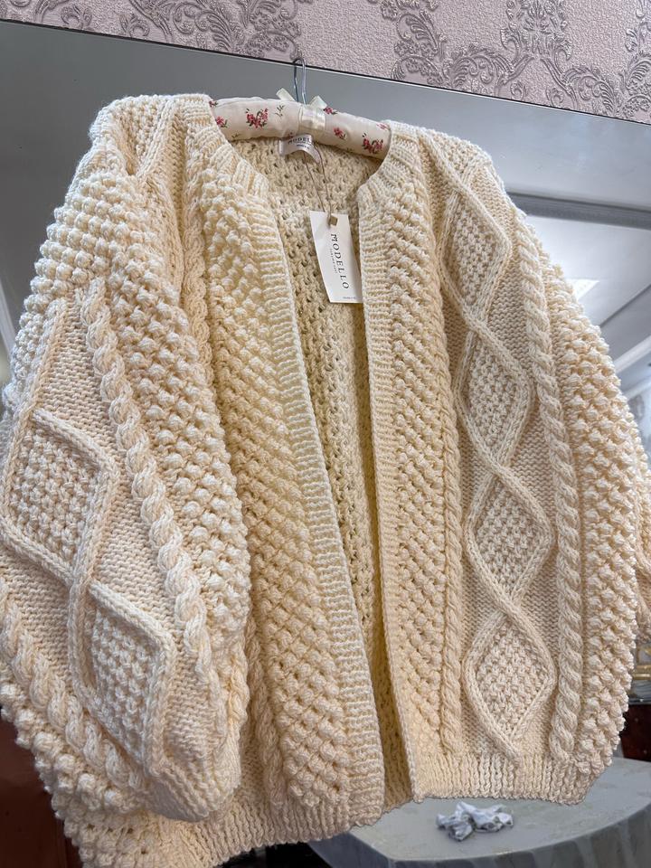 Вязаный кардиган ручной работы. Вяжу сама, инс: ainel_knits можете посмотреть мои работы. Состав: полушерсть (50% шерсть, 50% акрил) Без проблем можете стирать в стиральной машине, не растягивается, выполнен из такой пряжи который не теряет свою структуру. Теплая, стильная и цвет базовый. Но есть одно но… подходит только на рост до 160 см и размер до 50-го. 44 размер можете одевать как оверсайз будет вообще идеально. Под заказ вяжу такой кардиган за 55.000 тенге. Скорее забирайте за 35.000 Артикул: 529951