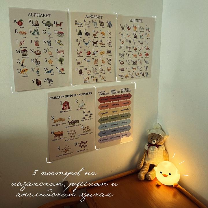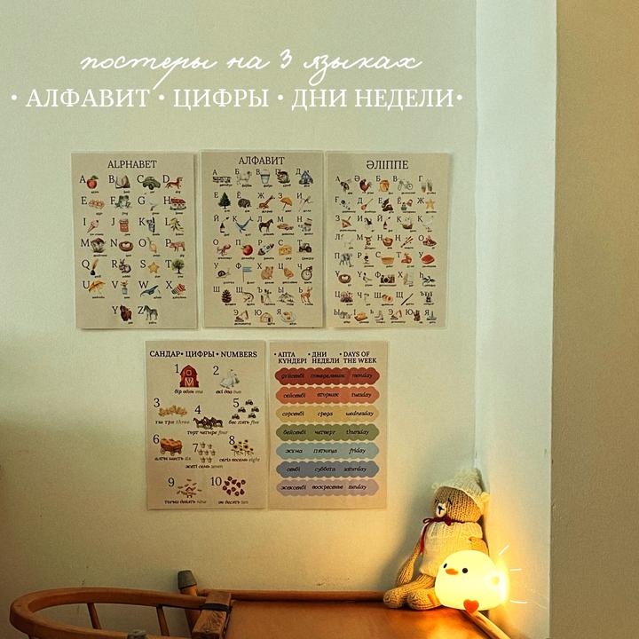 Набор из 5 постеров с ламинацией на казахском, русском и английском языках. Размер а4, плотные, яркие картинки Артикул: 529953