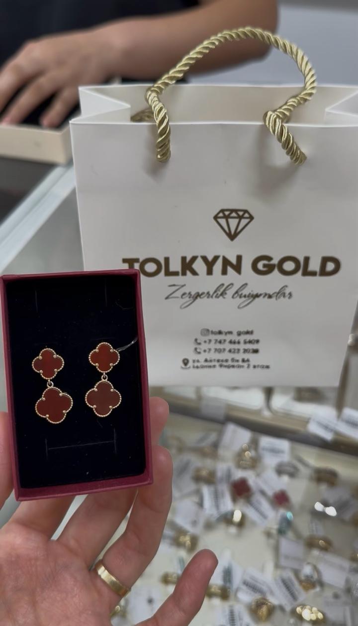 Золотые серьги в виде клевера 585-