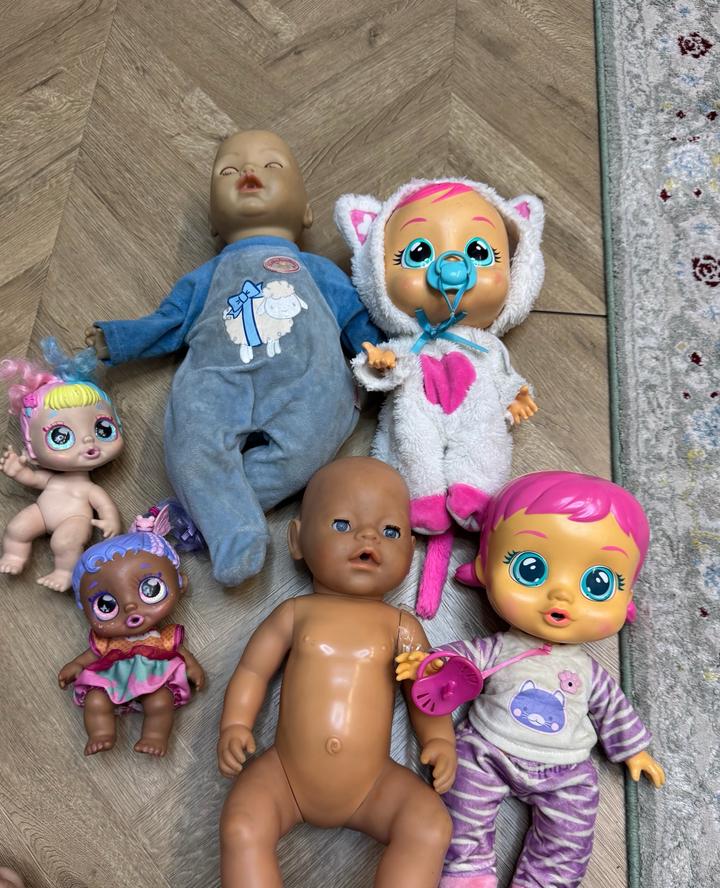 Пупсы Baby born Annabell( интерактивная на батарейках) , Cry baby с аксессуарами колясками и кроватью. Цена за весь лот Артикул: 530377