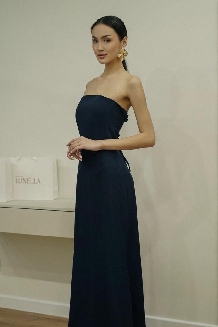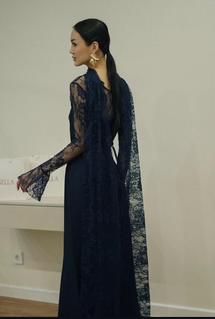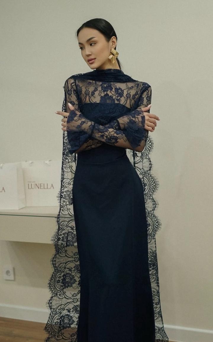 Темно синее вечернее платье , с кружевными деталями съемными. Размер S (42-44). Корсетный по типу , сзади на завязках. Длинное платье. Носилось 1 раз, в идеальном состоянии Артикул: 530484