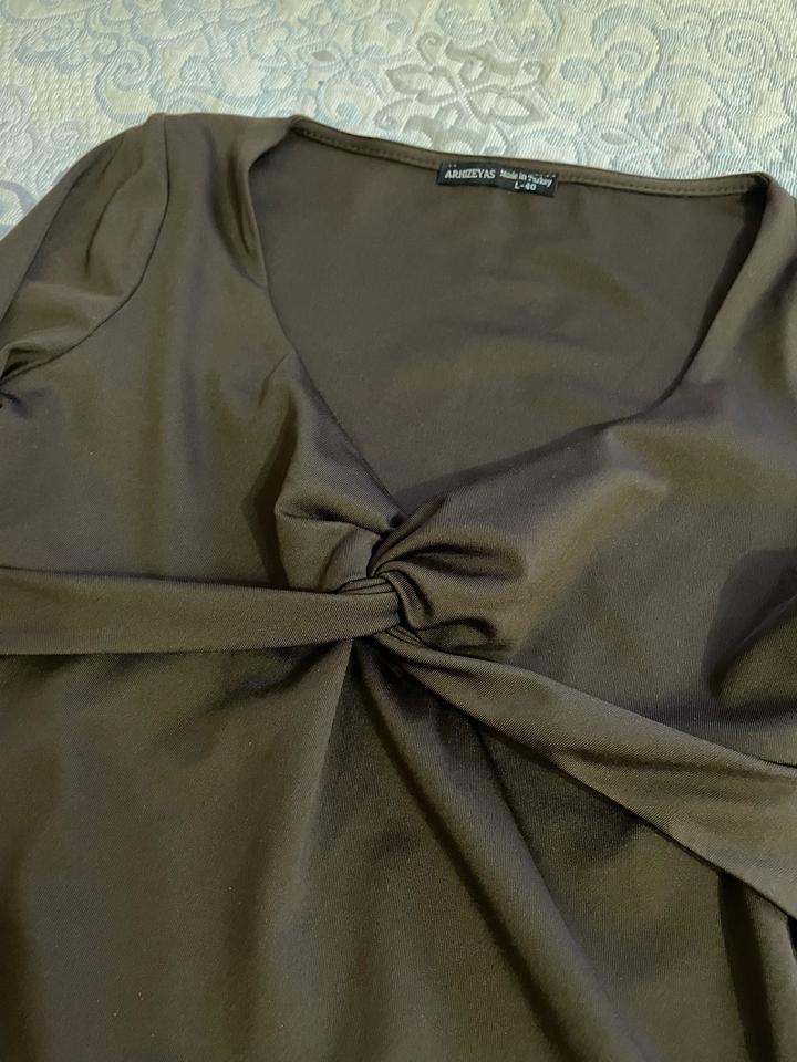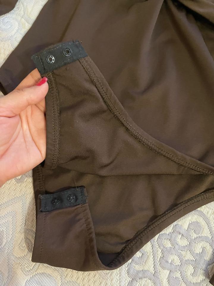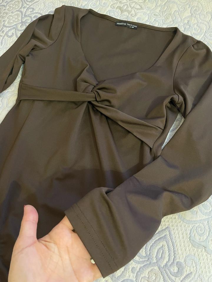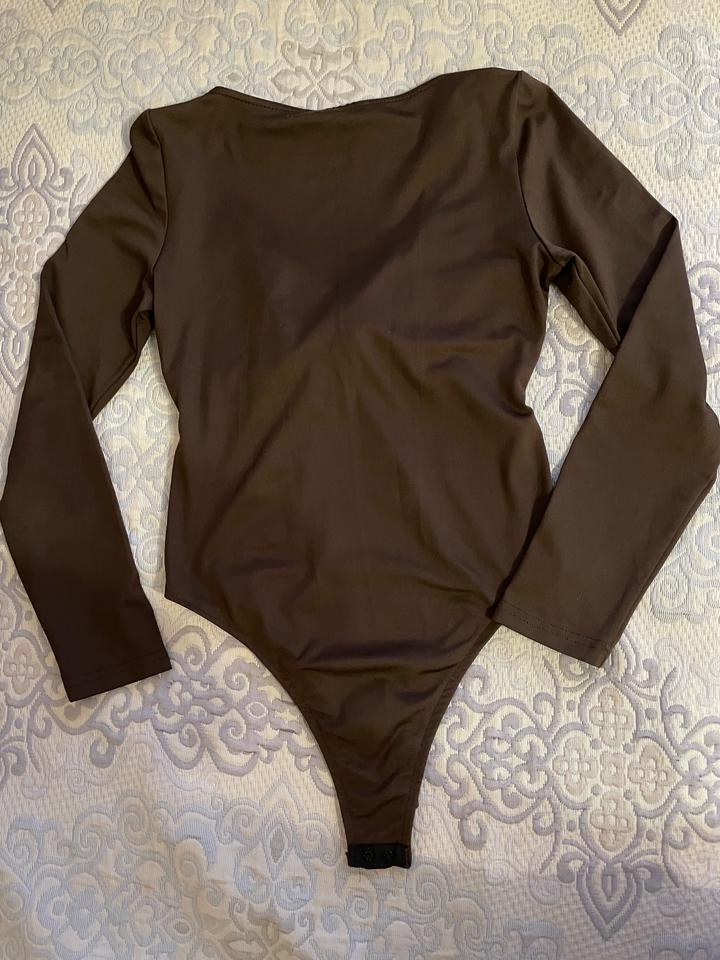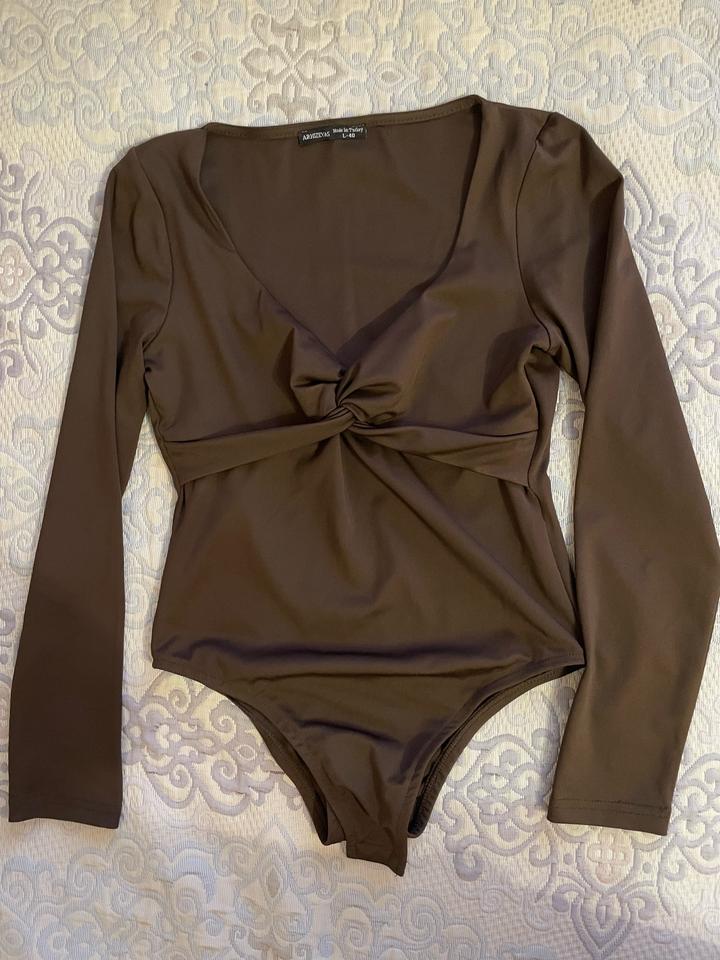 Боди красивого шоколадного цвета. Незаменимая вещь в гардеробе женщины, универсальная база для любой капсулы. Можно сочетать с разными юбками, брюками, джинсами, жакетом, пиджаком. Указан размер L, но маломерит и идеально подходит на размеры S / M. Артикул: 530551