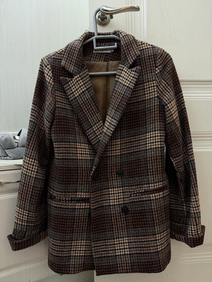 Ткань плотная, держит форму, внутри подклад, комфортный, не колется. Идеален на осень/зиму, под любой базовый лук. Размер M (но спокойно сядет и на S как оверсайз) Состояние отличное, без никаких дефектов. Носился один раз на вечер. Качество 60% хлопок, 40% полиэстер Артикул: 530878