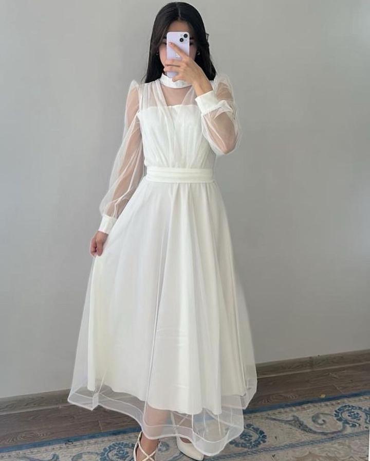 Белое вечернее платье на поясе. Размер S Артикул: 530953