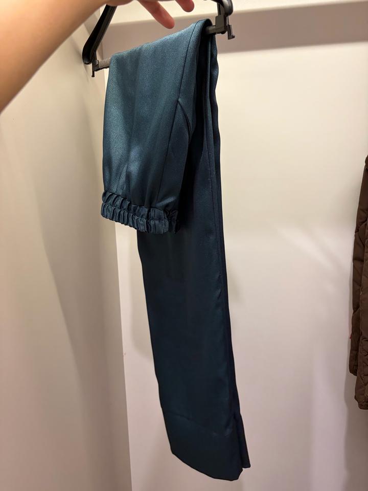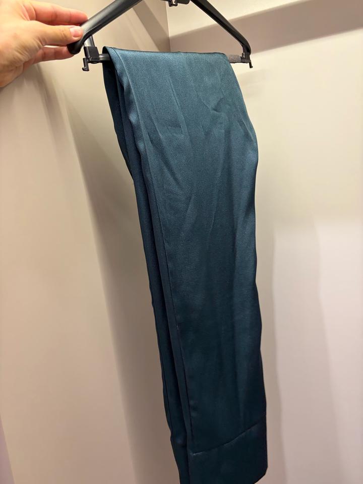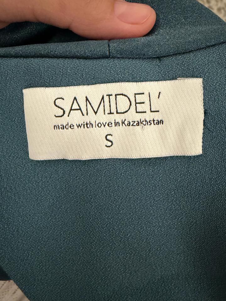 Продам костюм брючный от Казахстанского бренда Samidel. Из шелка. Отлично сидит по фигуре. Надето было один раз. Размер 42-44. Рубашка на запах. Красивый, благородный изумрудный цвет. Артикул: 530958