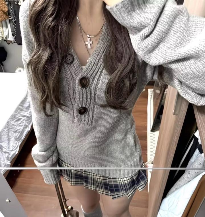 Элегантный мягкий вязанная кофта с полуоткрытым воротникомS/M