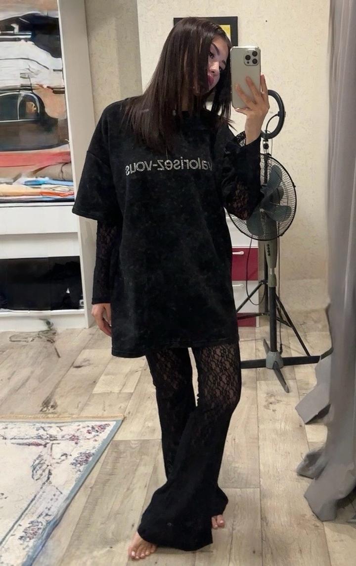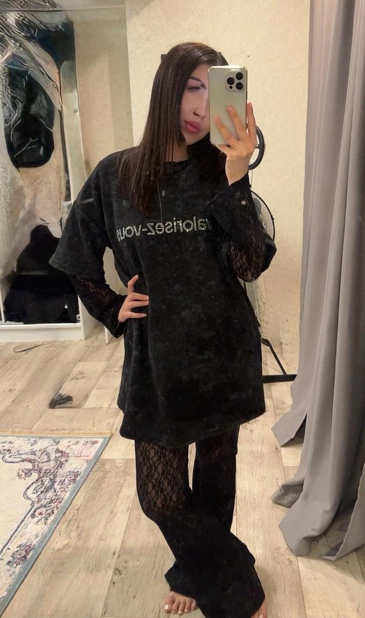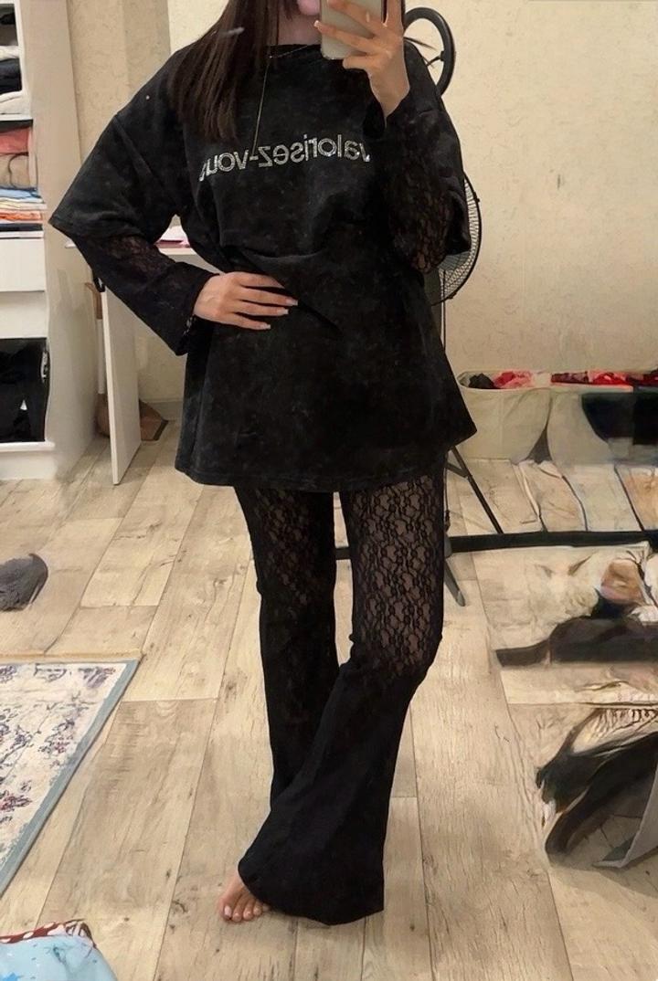 продам костюм тройка гипюровая кофта обтягивающая, гипюровые штаны кюлоты(в комплекте шорты черные под гипюр) и футболка туника, размер 42-44 Артикул: 530982