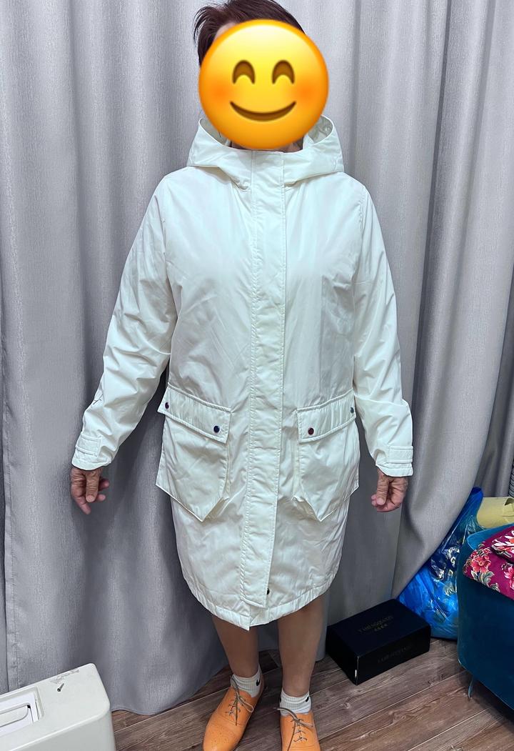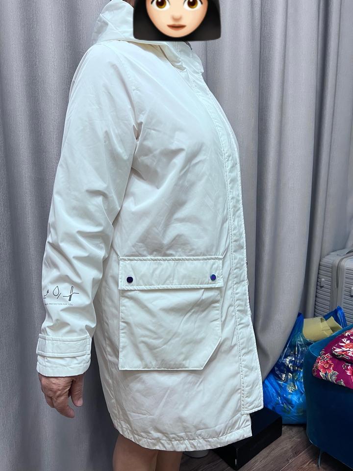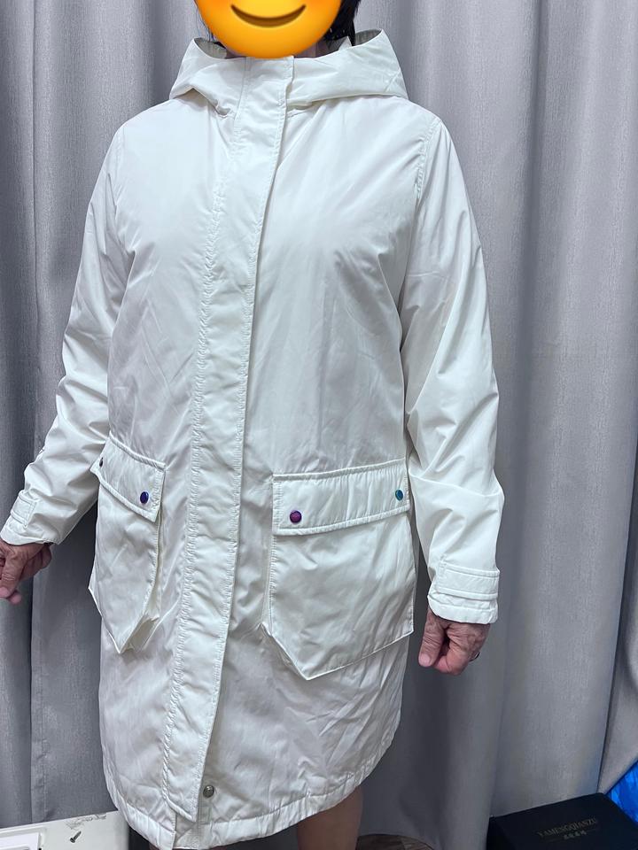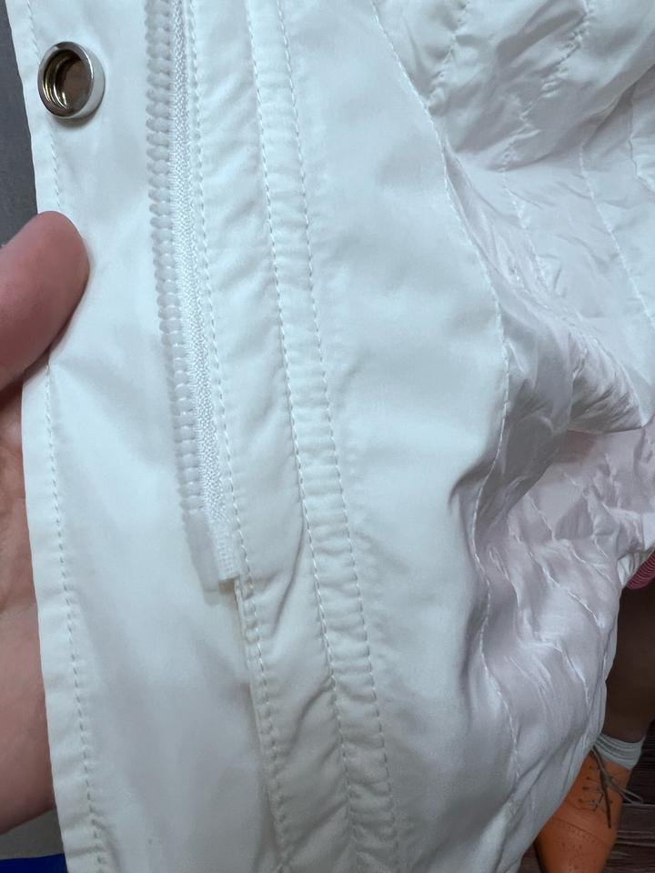 Белая куртка-ветровка с капюшоном и накладными большими карманами. На молнии и кнопках. Артикул: 531026