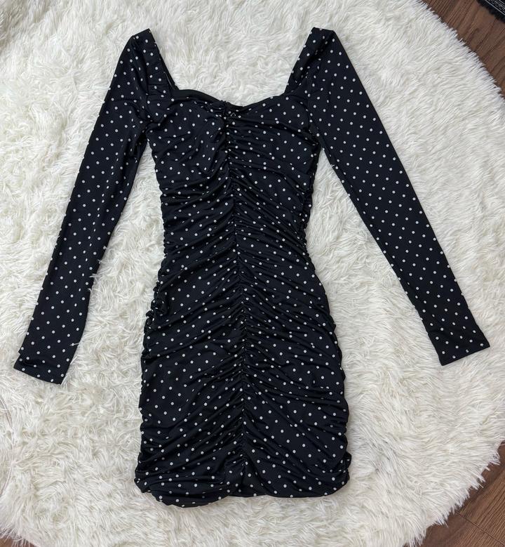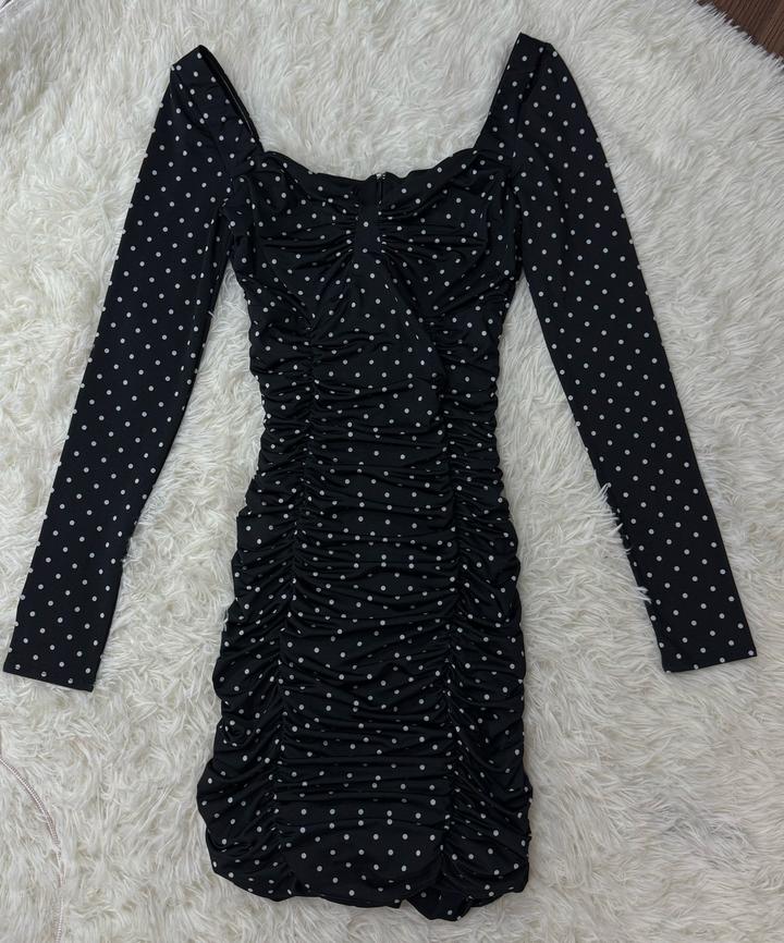 Платье черное в горошек Guess. Облегающие, с длинными рукавами. Одевала один раз. Состояние отличное Артикул: 531184