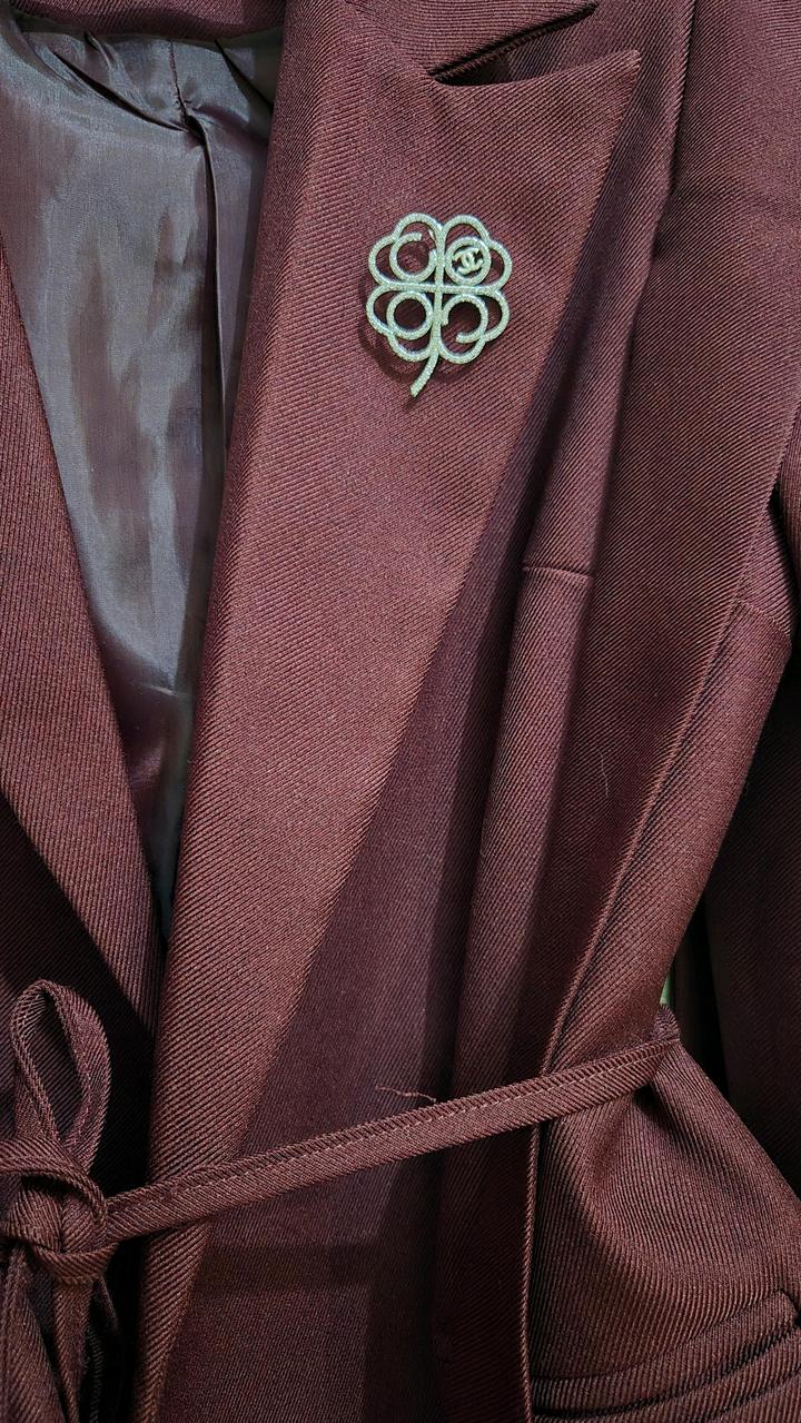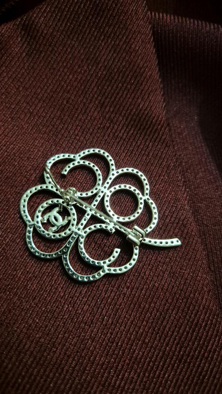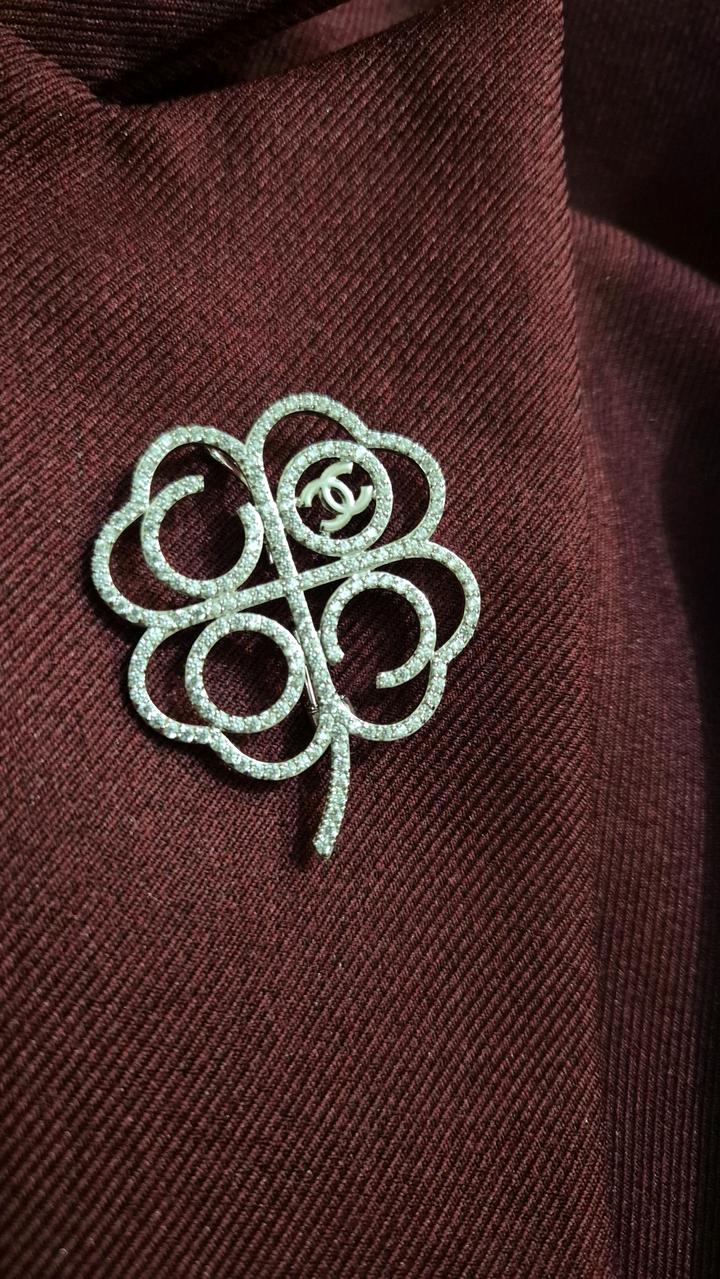 Брошь в виде клевера , с логотипом chanel. Реплика, в оригинале идет пробе, здесь ее нет. Материал качественный, все камни присутствуют. Артикул: 531202