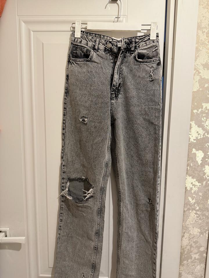 Продается серые джинсы,рванные джинсы на одно колено с высокой посадкой Артикул: 531239