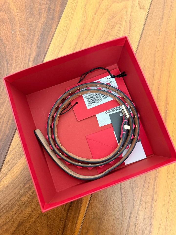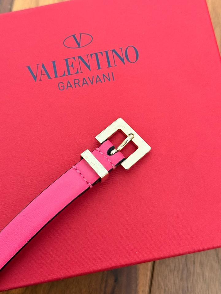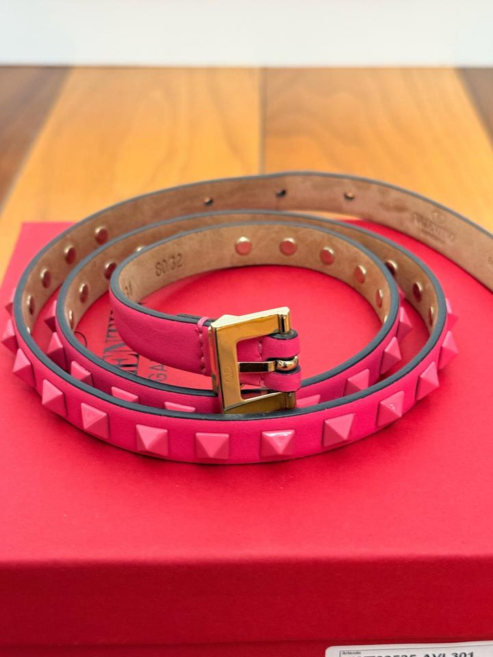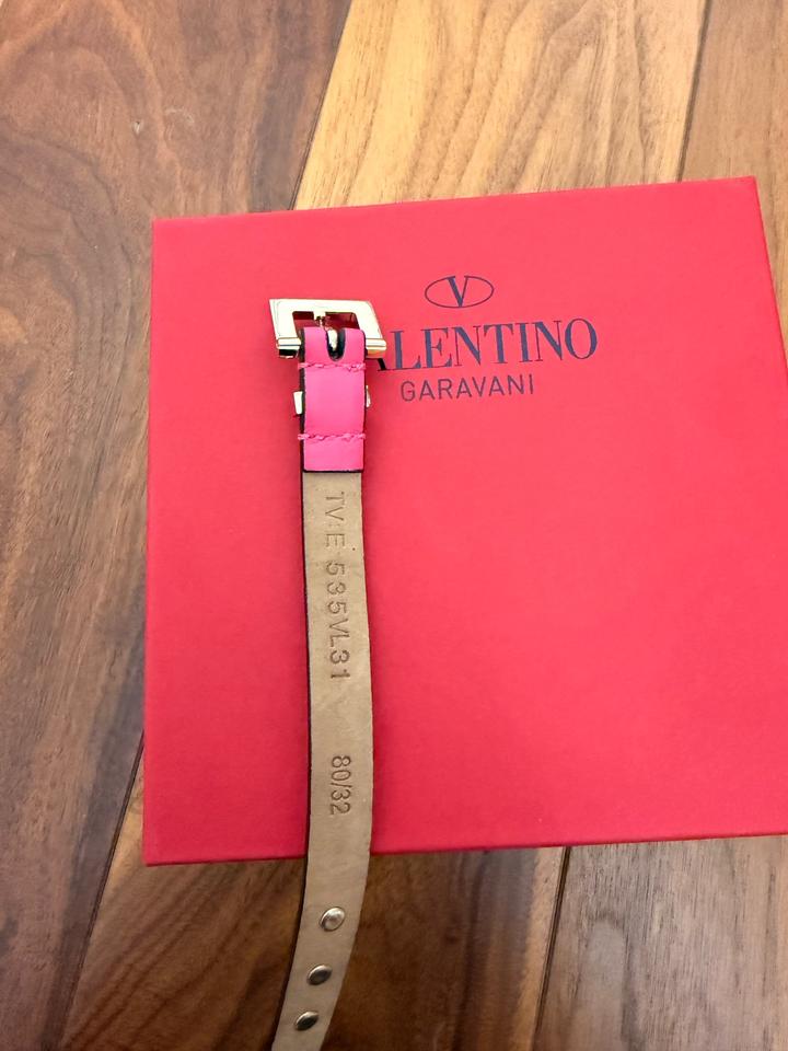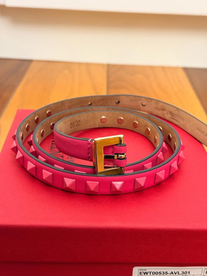 Розовый ремень Valentino rockstud с шипами 80 см Хорошее состояние- есть следы носки, царапины на металических частях. С коробкой. Покупала на сайте net-a-porter Артикул: 531275