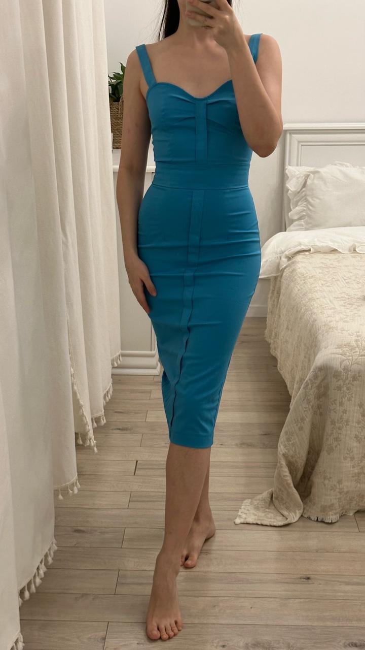 Платье футляр от MS. Насыщенного лазурно-голубого цвета. Очень красиво подчеркивает фигуру🤩 Платье новое, не было в носке, но этикетка удалена была. Артикул: 531319