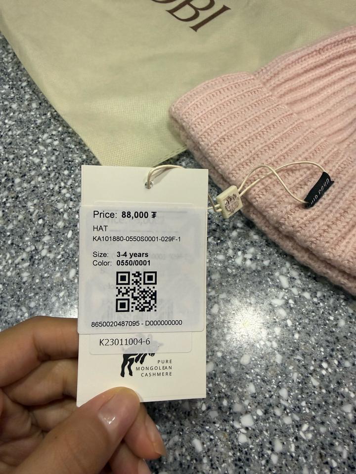 Популярный монгольский бренд gobi шапочка детская из 100% кашемира ,покупалась в самой Монголии (страна кашемира) в столице Уломбатр ,кашемир из овцы мириносца Муж в командировке Монголии купил думал женская ,оказалась детская 😂 с биркой ,и чехлом не одевалась не разу ,на этикетке можно увидеть цену Артикул: 531494