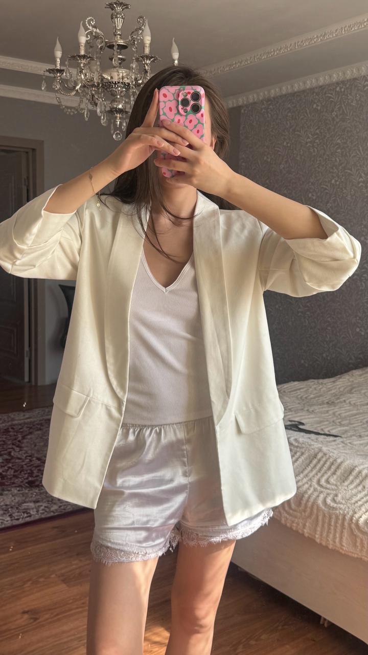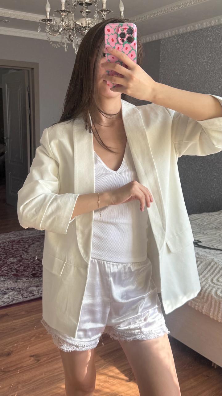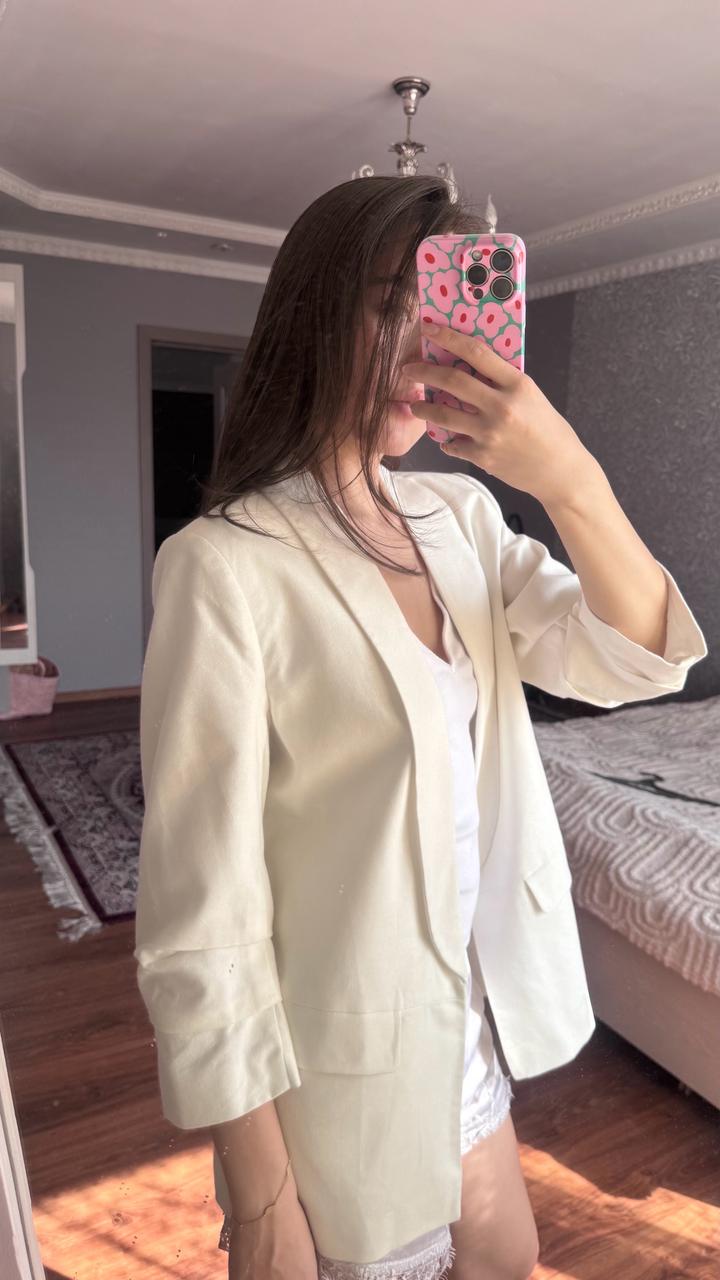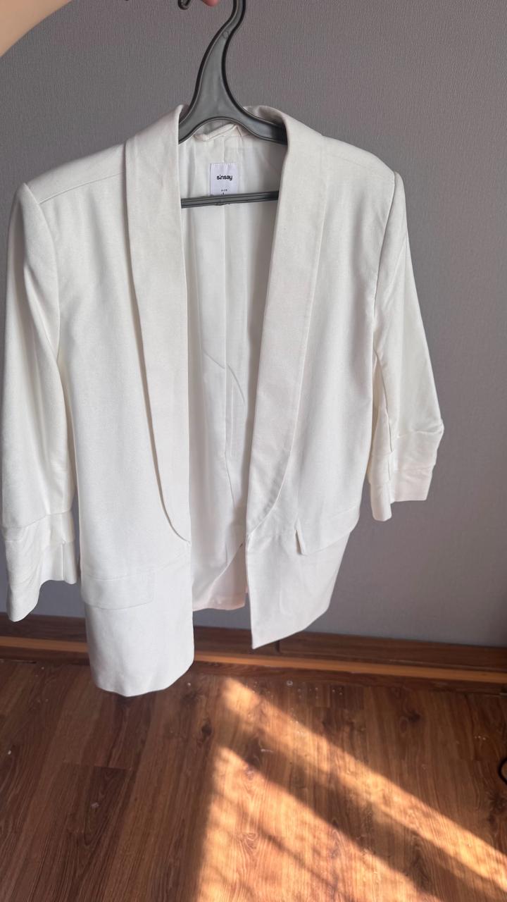 Белый пиджак от Sinsay. С укроченными рукавами. Из хлопка В отличном состоянии. Подойдет на размер С и М Артикул: 531526