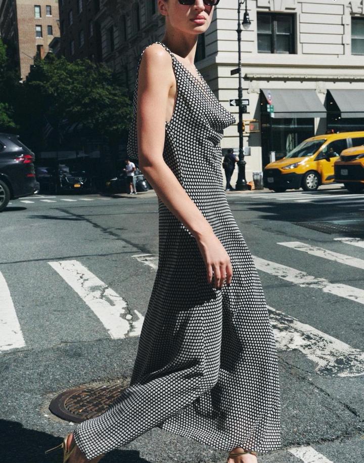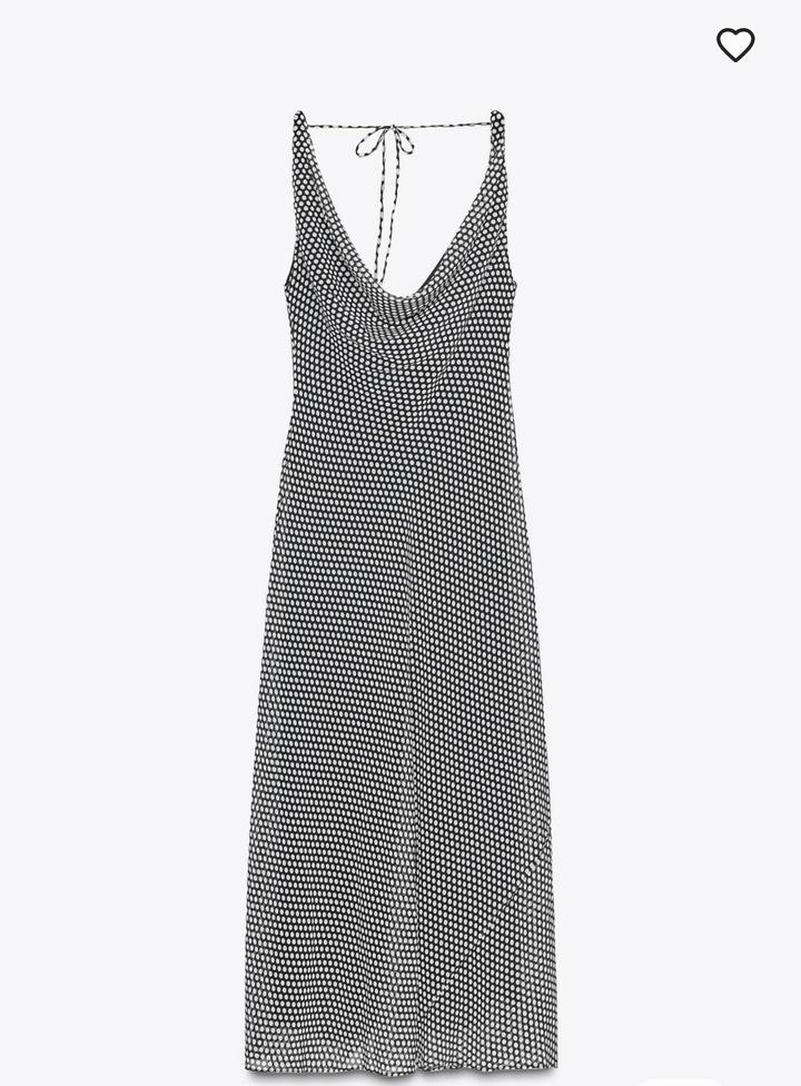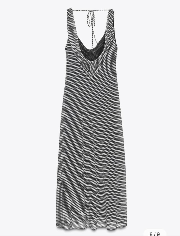 Новое платье от Zara Размер S Принт в горошек Длина миди Плавный вырез со сборками Открытая спина с регулируемыми завязками Легкая расклешенность снизу Артикул: 531536