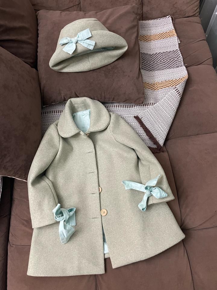 Шикарный , очень красивый комплект польто с шляпкой , сшито на заказ , банты сьемные , в новом состоянии , подойдут на 3,4 годика Артикул: 531551