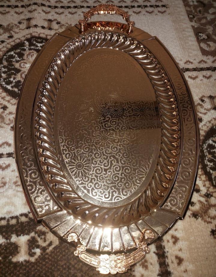 Продам мельхиоровый поднос. Производство Турция. Новый .Очень богато смотрится.В коробке с пыльником.Сзади подноса имеется гравировка. Артикул: 531590