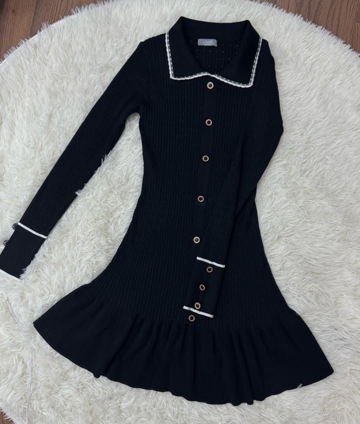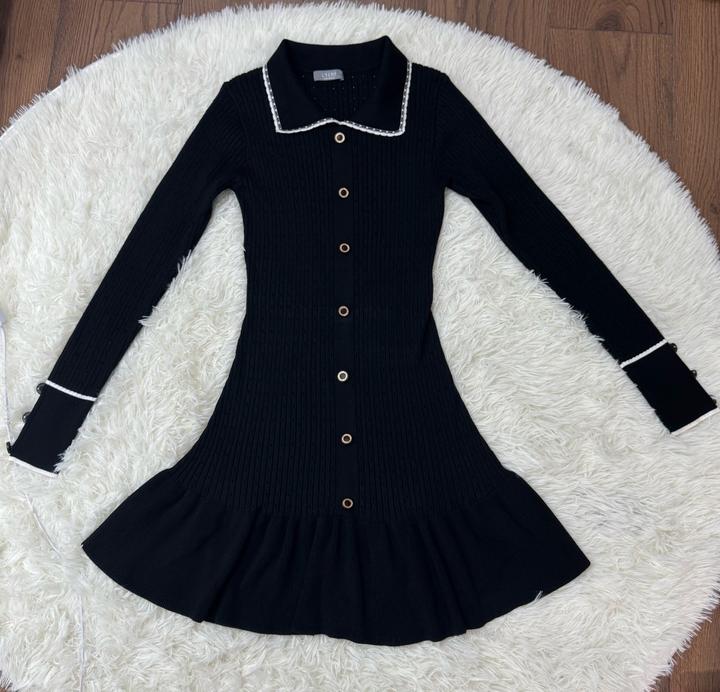 Платье черное с длинными рукавами и ратником.Прилегающее платье из фактурного трикотажа с воланом на юбке. Артикул: 531628