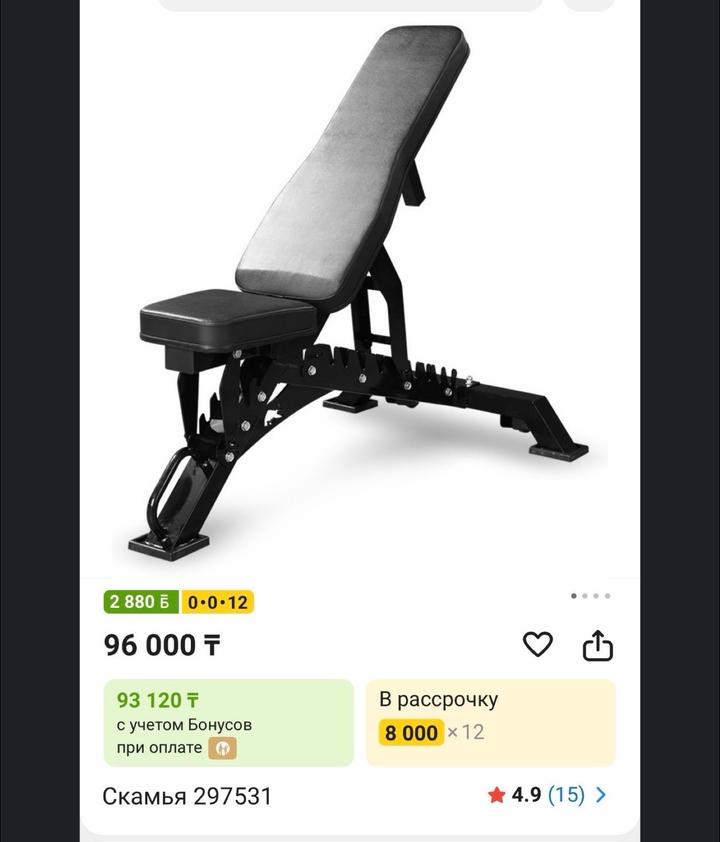 Проффесиональная скамья , новая , высокое качество 45 000, идеальный вариант для домашнего спортзала домашнего, цена на Каспий 96 000, уже собранная и готова к использованию , можно аккуратно сложить и поставить Артикул: 531658