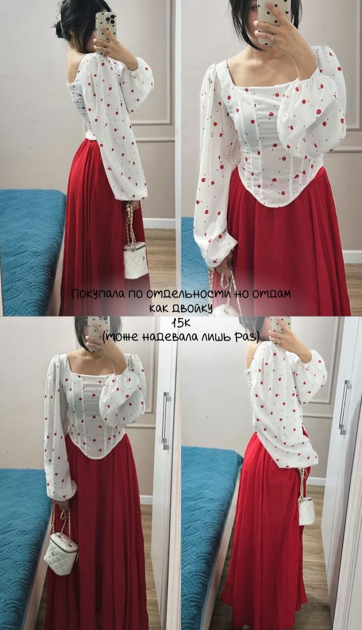 Красная юбка+белая корсетная блузкаS