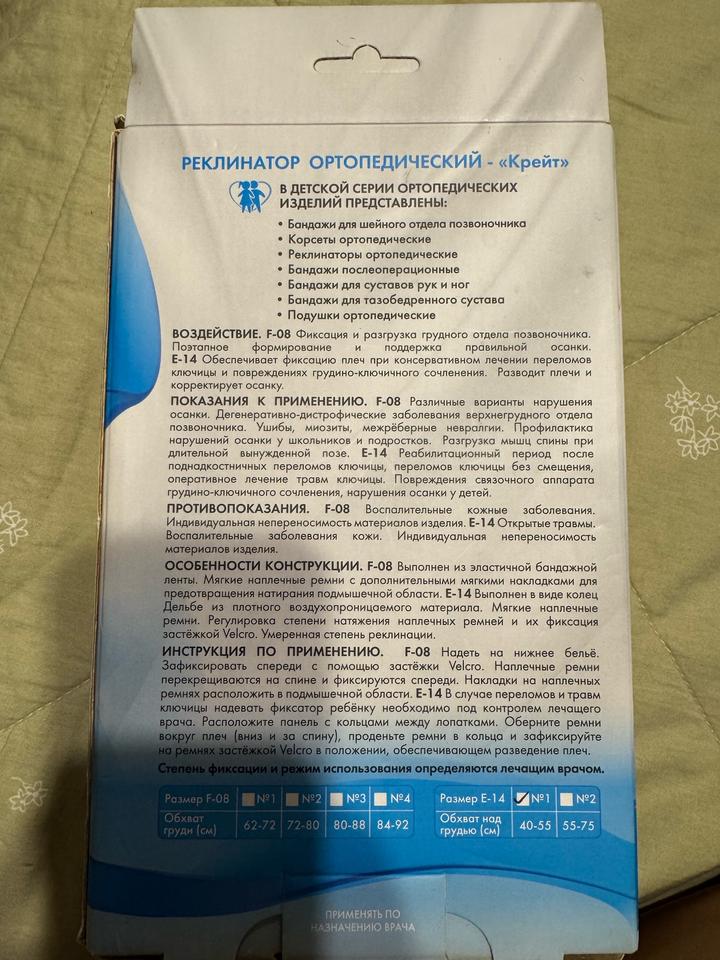 Реклинатор ортопедический детский (бандаж). При переломе ключицы. Состояние идеальное. Артикул: 531808