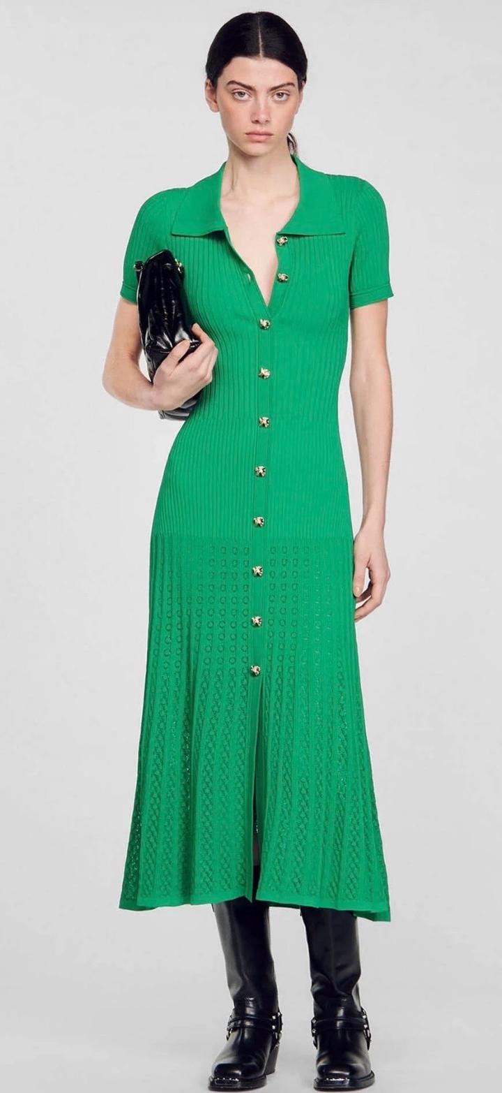 Красивое платье в стиле Sandro. Без бренда , бирок нет . Надето на 5 минут для 1 фото. Размер универсальный s/m/l , ткань тянется и садится по фигуре . Пуговицы декоративные, расстегивается только 1 верхняя . Рекомендую на рост от 160 см . Артикул: 531830