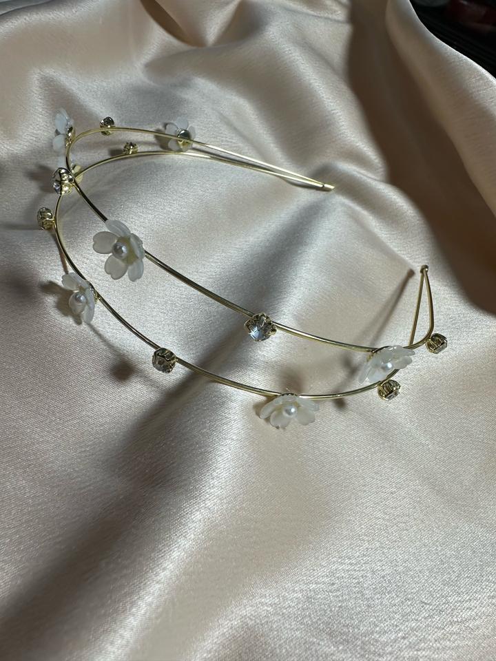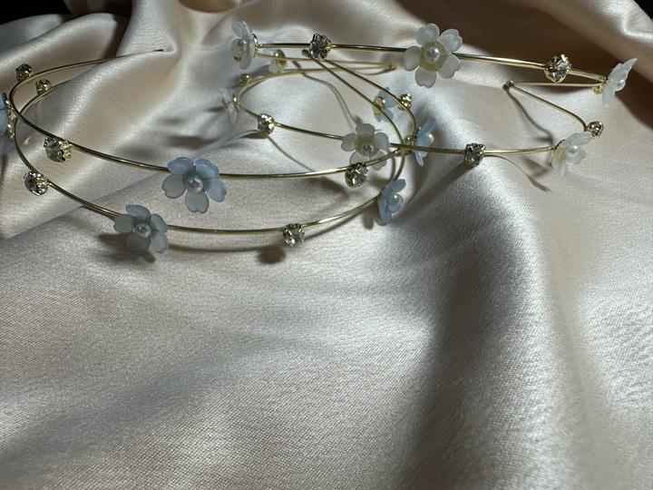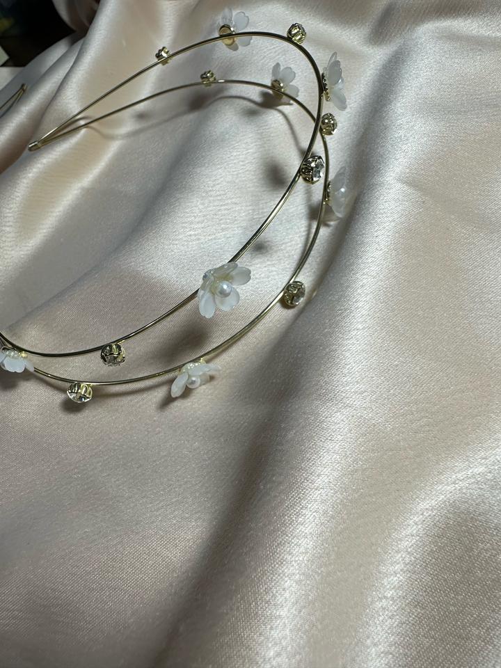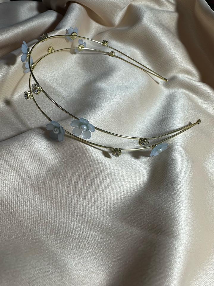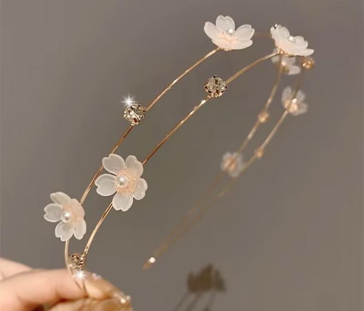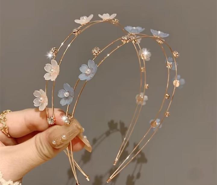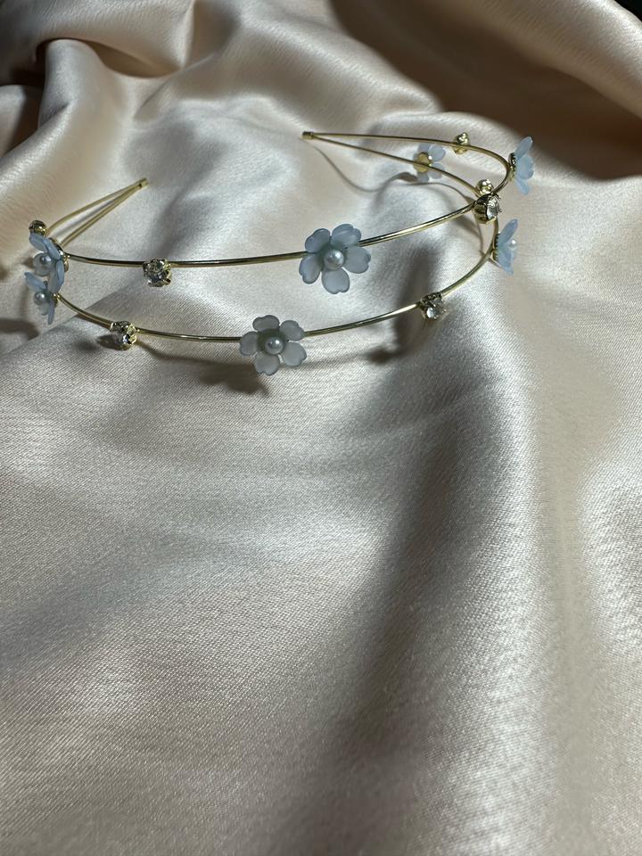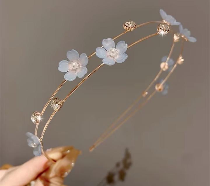 Два ободка на голову в белом и синем цвете, с дизайном в виде цветов вишни и стразами, стильный аксессуар для волос Артикул: 531854