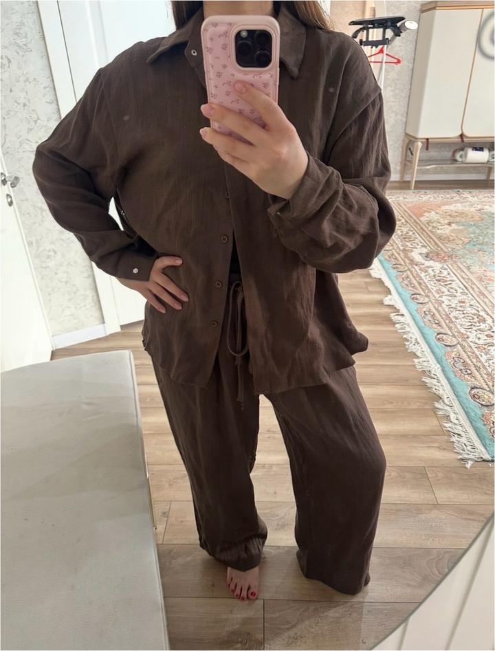 Лен двойка на весну и лето. Коричневого цвета . Подойдет на Л и М Артикул: 532035