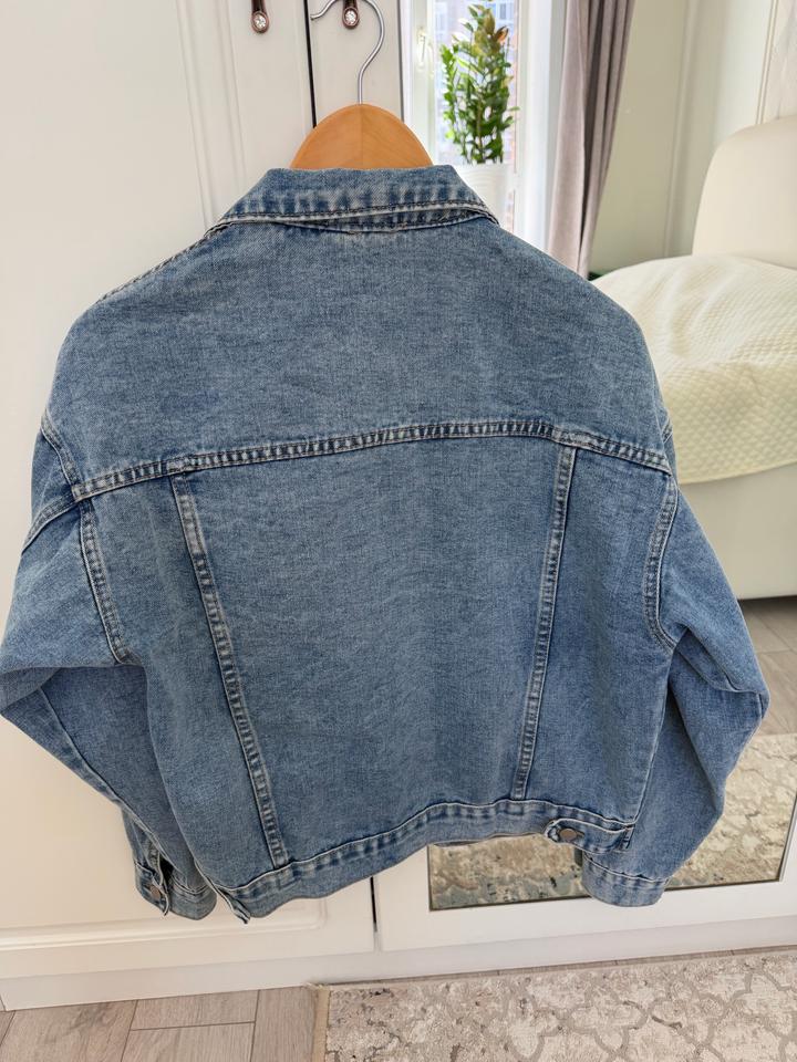 Джинсовка размер М/L (44-46), покупала когда была в положении, чтобы была широкой в талии. Может подойти больше на 46 наверное. Покупала на озон, поэтому нет бирок с названием фирмы изготовителя. Носила пару раз. В хорошем состоянии. Артикул: 532294