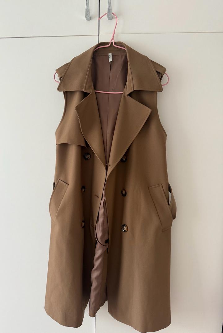 Идеальная база для вашего гардероба! Это стильное платье-жилет (тренч без рукавов) — настоящий трансформер. качественные пуговицы, классический воротник и пояс в комплекте. Размер на бирке указан стандартный L, но благодаря фасону и поясу идеально садится и на S-M (эффект легкого оверсайза или регулировка по фигуре). Артикул: 532328