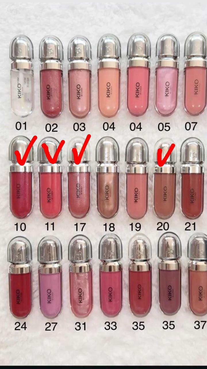 Блеск для губ Kiko НОВЫЕ 4 шт оттенки -10-11-17-20-
