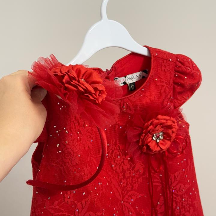Продам платье турецкого бренда Pamina. 92 размер, подойдет для 2-3 года. На фото 2.5 года девочке (немного выше ровесников) В комплекте идет ободок. Надевали 1 раз на мероприятие. Артикул: 532562