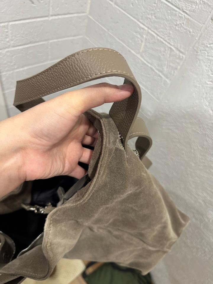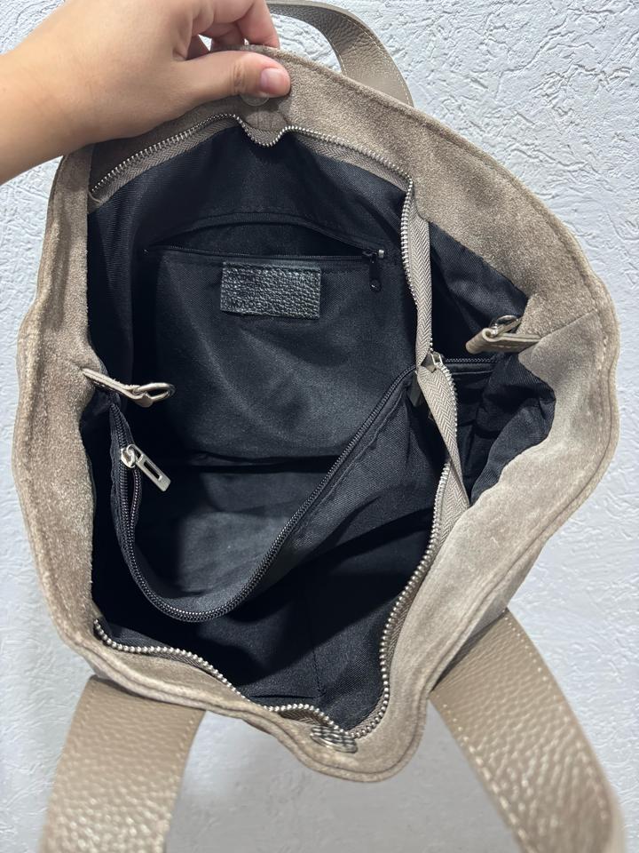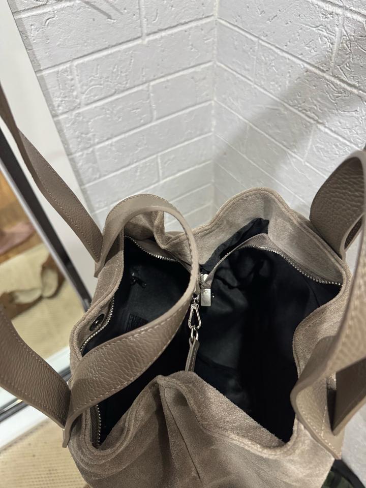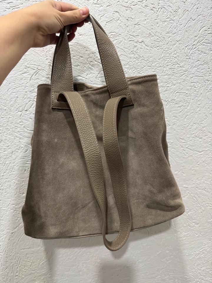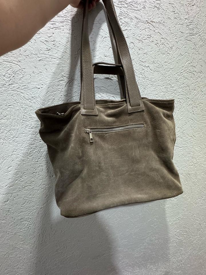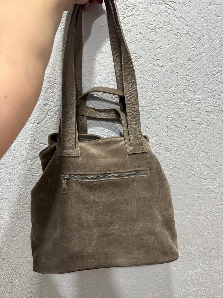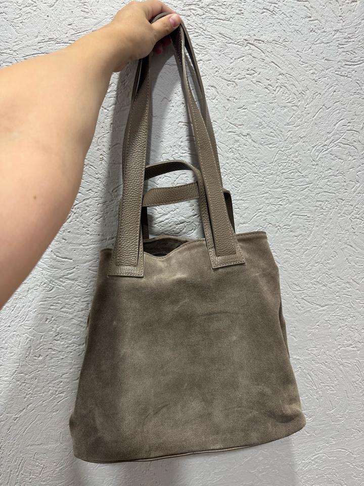 Натуль Ная замша с комбинацией с натуральной кожей. Производство:Италия. Сумка шоппер. Была использована пару раз, цвет тауп. Дефектов нет. Артикул: 532571