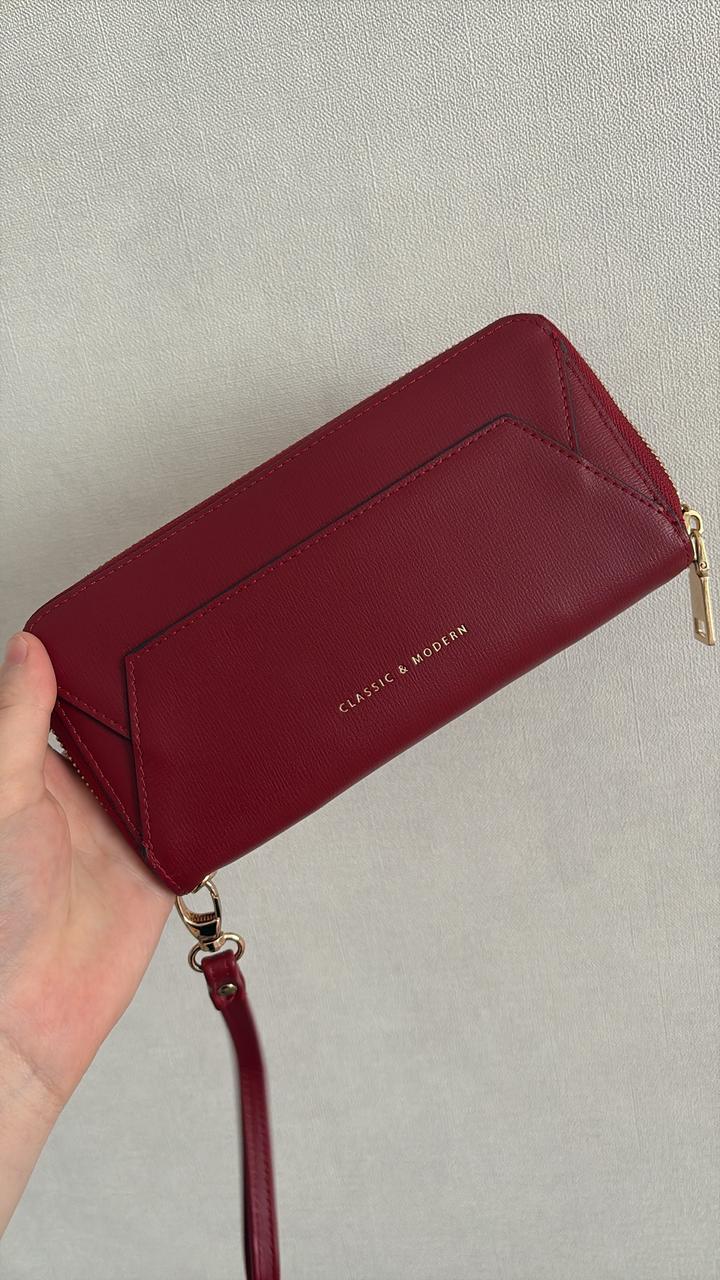 Практичный женский кошелек темного красного цвета, 11 отсеков, очень удобный, в наличии 30 штук Артикул: 532588