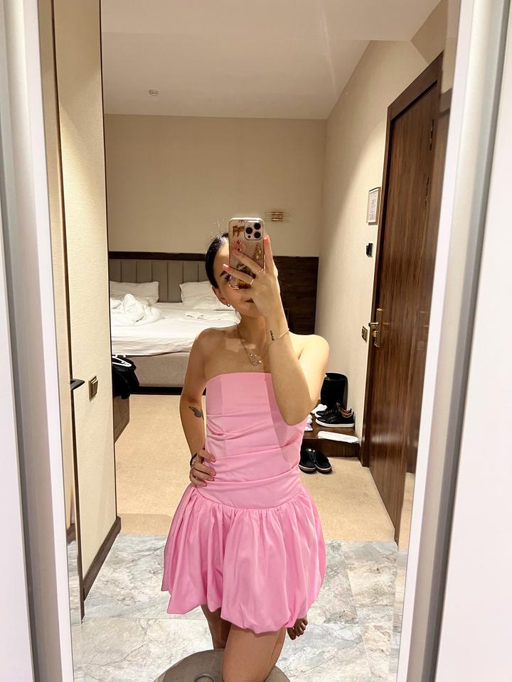 Розовое короткое платьеS