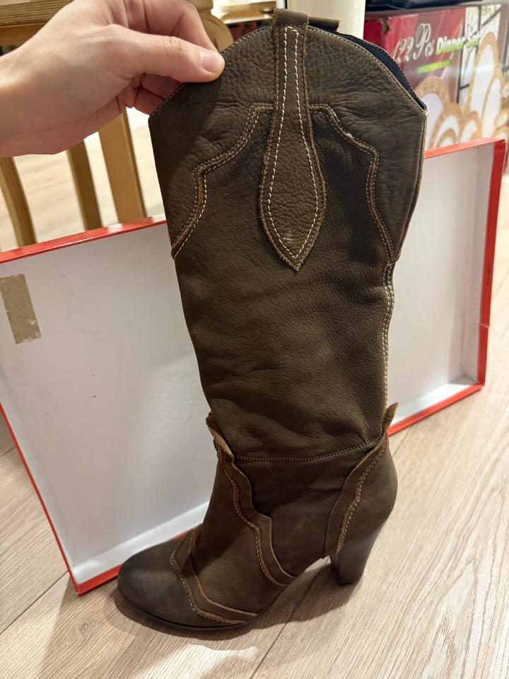 Казачки, натуральная кожа, внутри полностью, состояние почти новые, удобный невысокий каблук, размер 37-37,5 р, Артикул: 532935