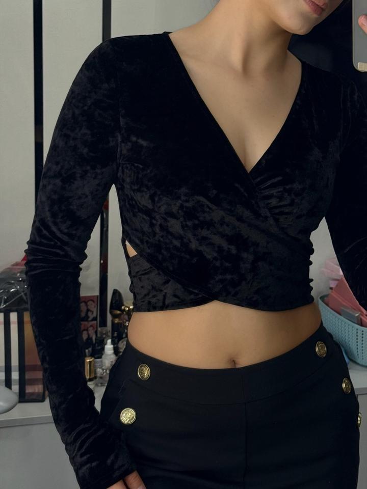 Топ черный под велюр. Классно сочетать под образы. Артикул: 533036