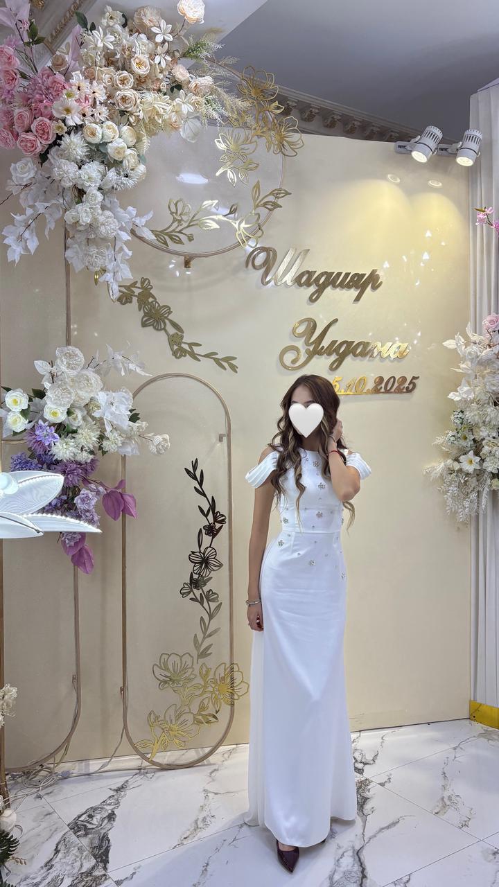 Белое платья с корсетом сзадиS