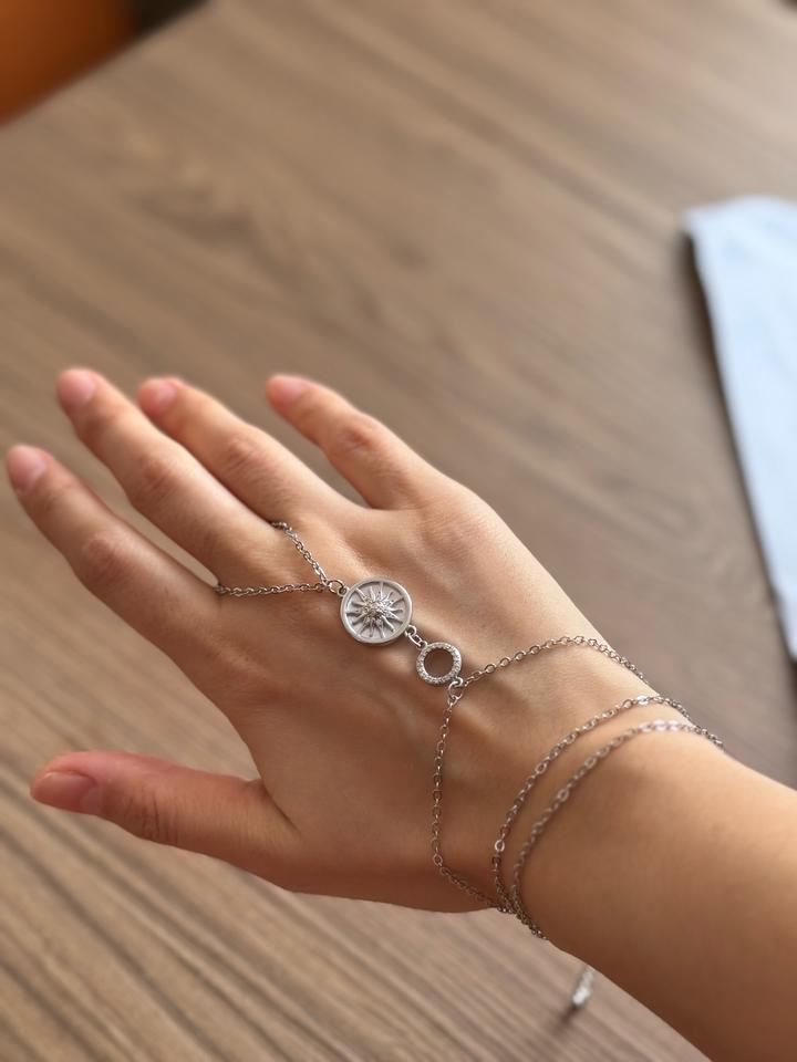 Слейв-браслет в этно-стиле с солнцем Очень красивый браслет на руку Смотрится изящно на руке Упакован в пыльник мешочек💙 Материал Латунь покрытие родий Вставка натуральный перламутр Артикул: 533222